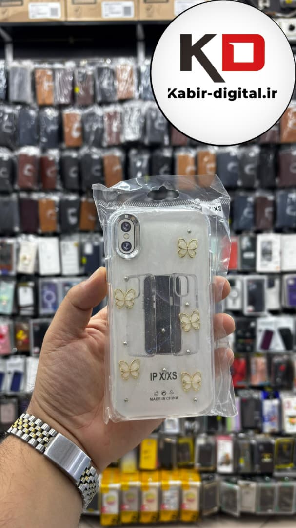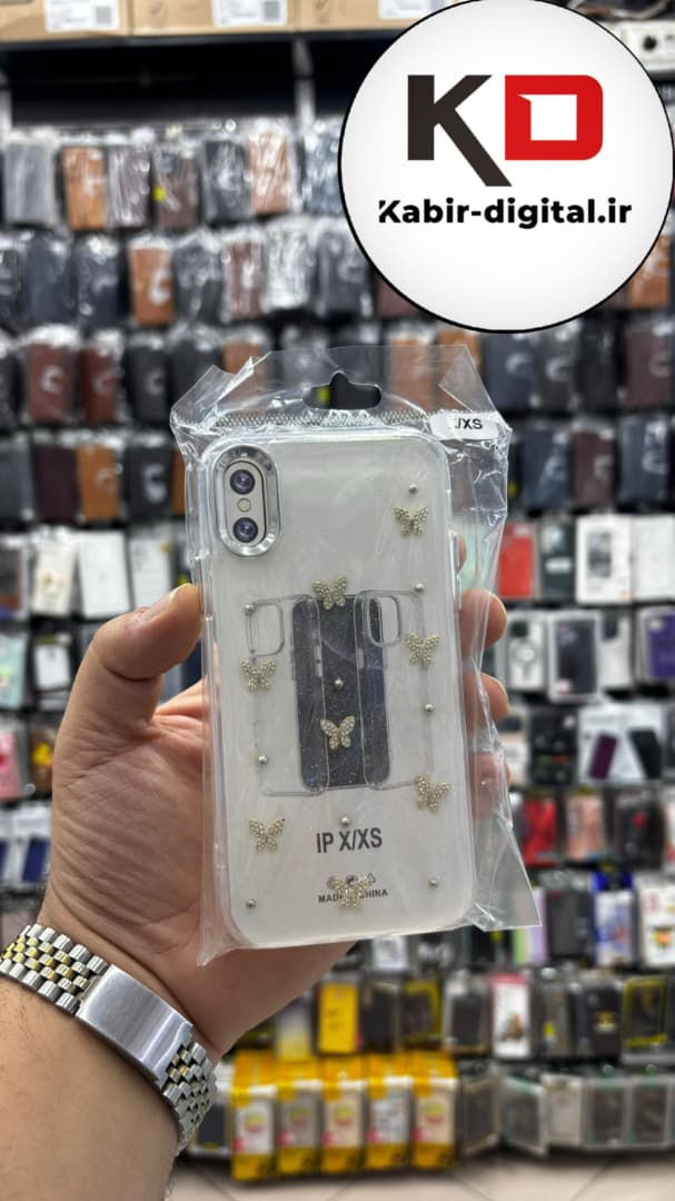 قاب گوشی iPhone Xs / X آیفون لاکچری شفاف رزینی طرح شاین لنز کرومی طرح پروانه نگین دار۳۵۰٬۰۰۰ 5%