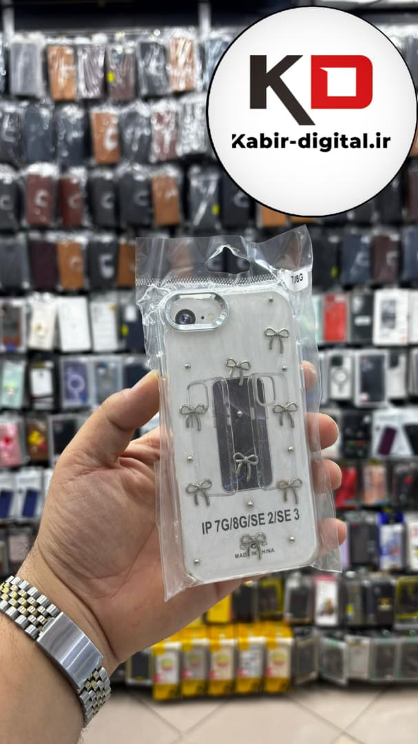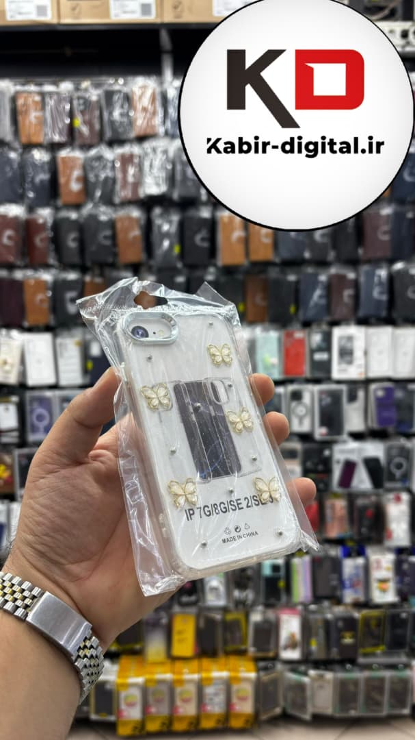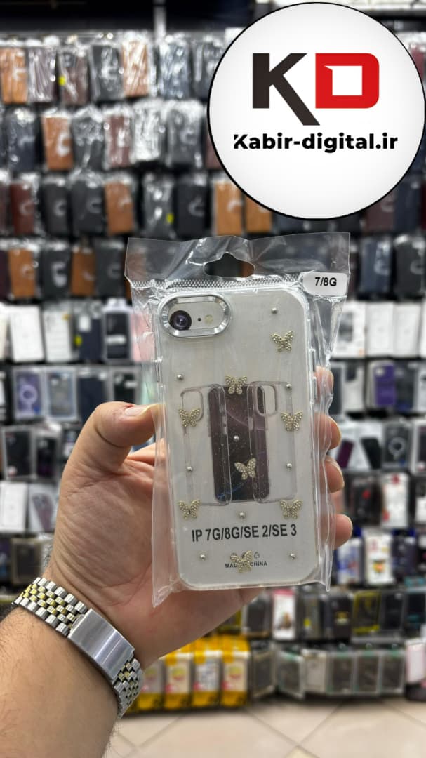 قاب گوشی iPhone 7 / 8 / SE آیفون لاکچری شفاف رزینی طرح شاین لنز کرومی طرح پروانه نگین دار۳۵۰٬۰۰۰ 5%