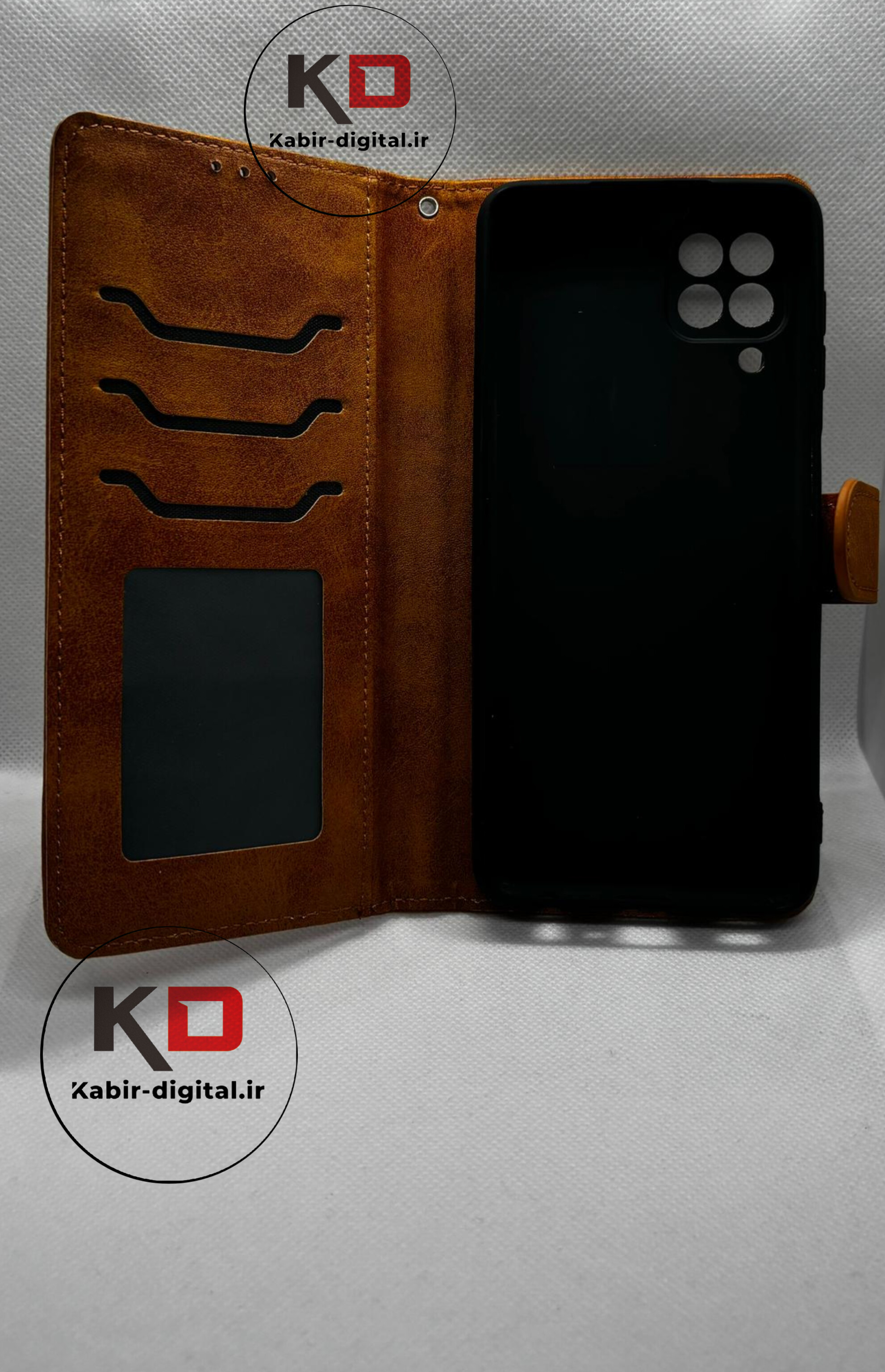 کیف چرمی Samsung Galaxy A22 4G مدل لپ تاپی جاکارتی دار (محافظ لنزدار)