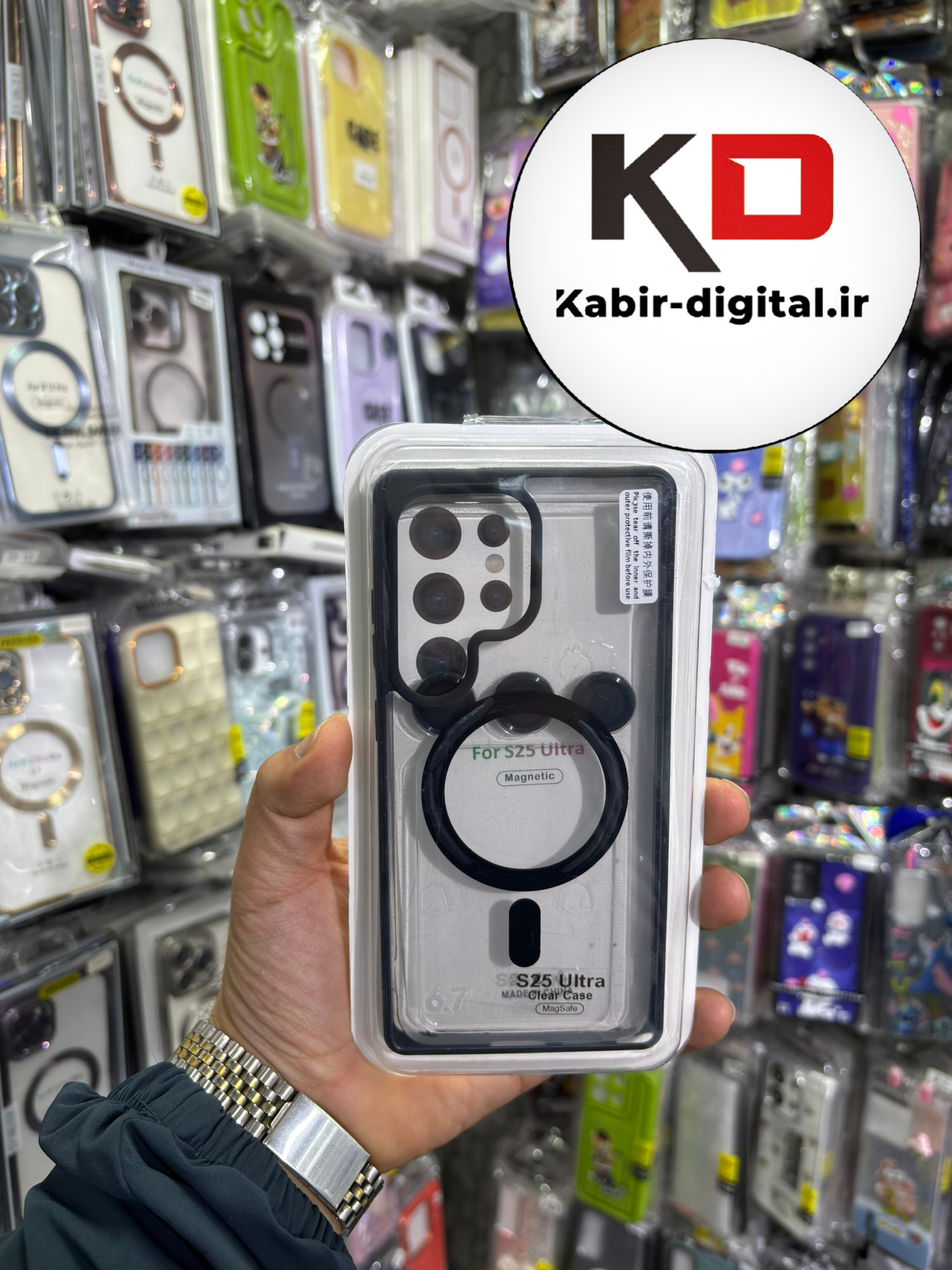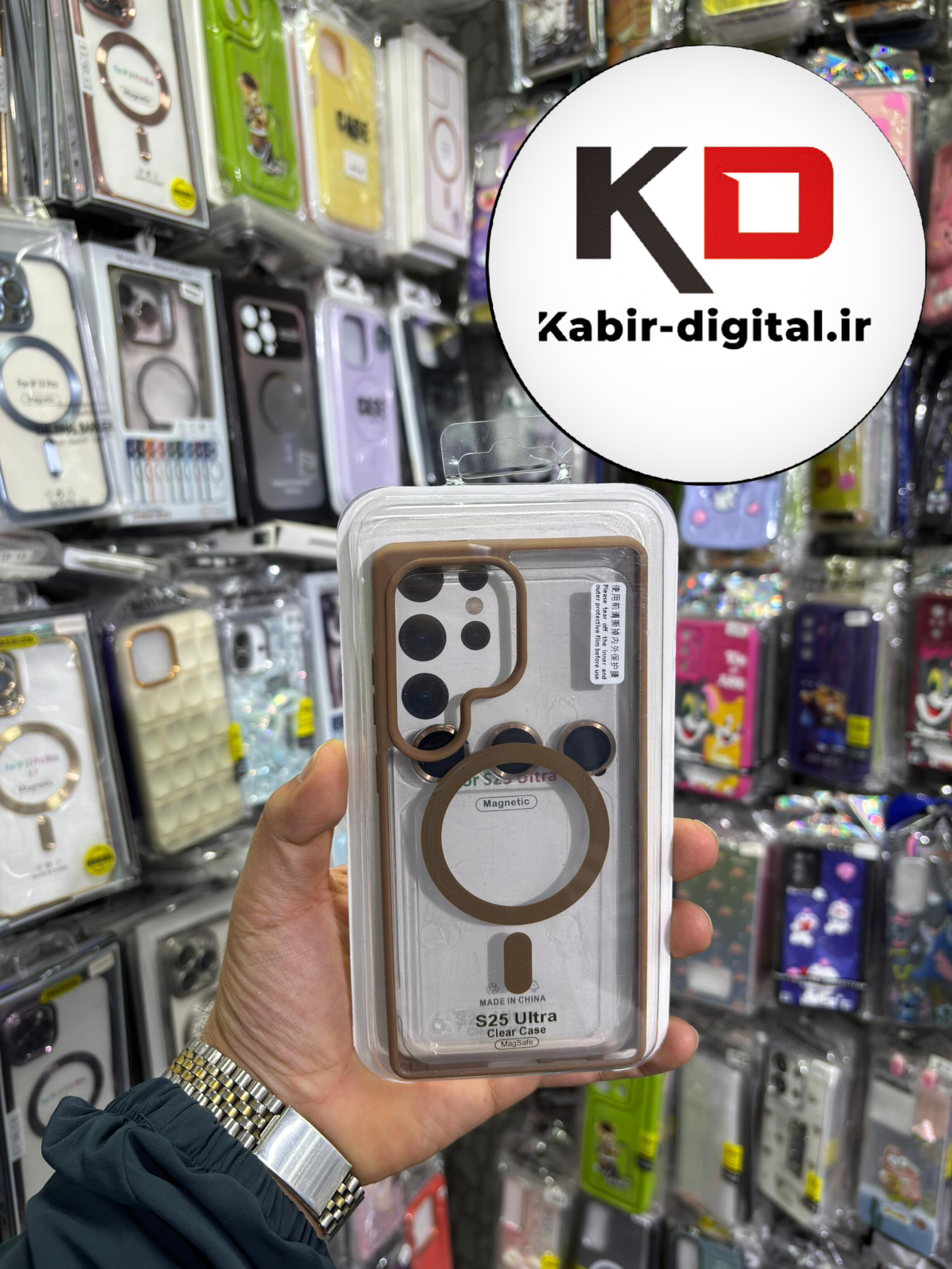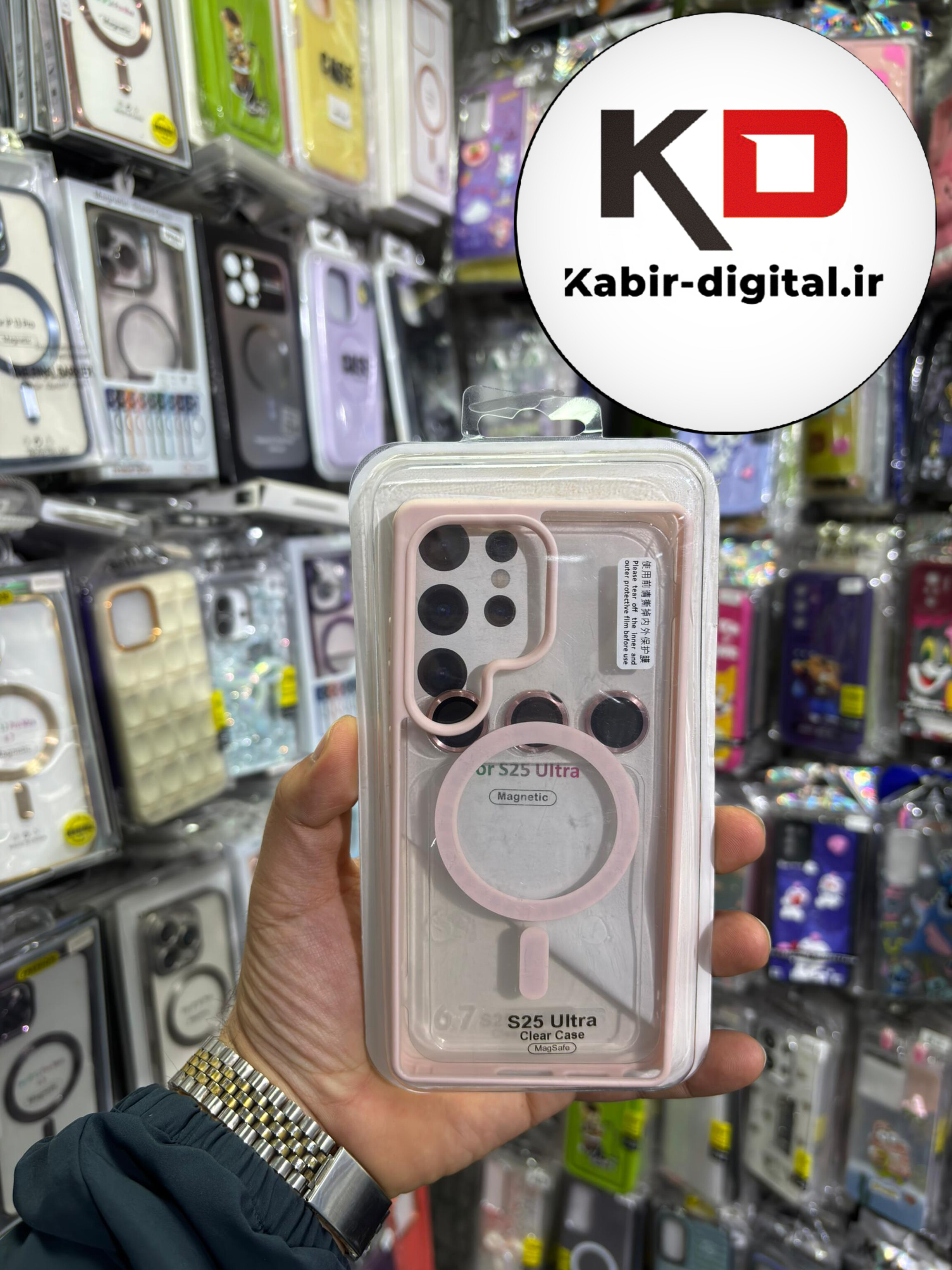 قاب گوشی Galaxy S25 Ultraسامسونگ شفاف مگ سیف دار MagSafe اورجینال Metal Stand Case به همراه محافظ لنز رینگی