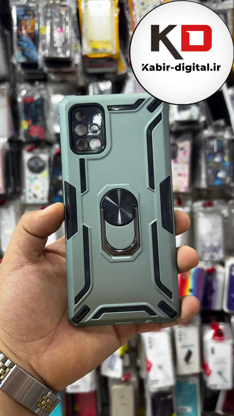 قاب گوشی Galaxy A71 سامسونگ طرح ضد ضربه بتمن هولدر دار محافظ لنز دار ایربگ دار سبز کله غازی