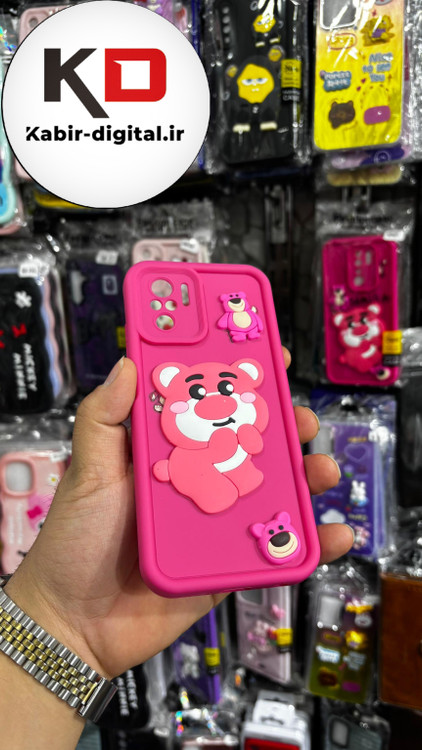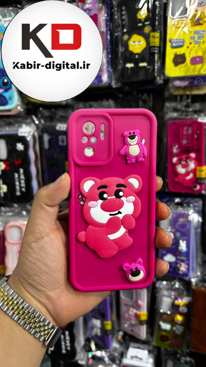 قاب گوشی Redmi Note10 4g -Note 10s - poco M5s شیائومی سیلیکونی Solid Case ضد ضربه عروسکی برجسته طرح خرس صورتی محافظ لنز دار