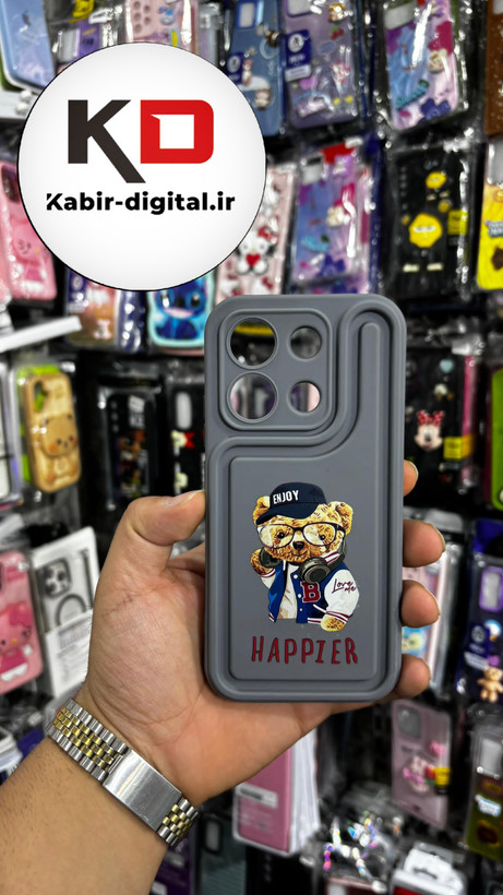 قاب گوشی Redmi Note 13-Poco X6شیائومی طرح سیلیکونی Solid عروسکی برجسته محافظ لنزدار طرح خرس خاکستری