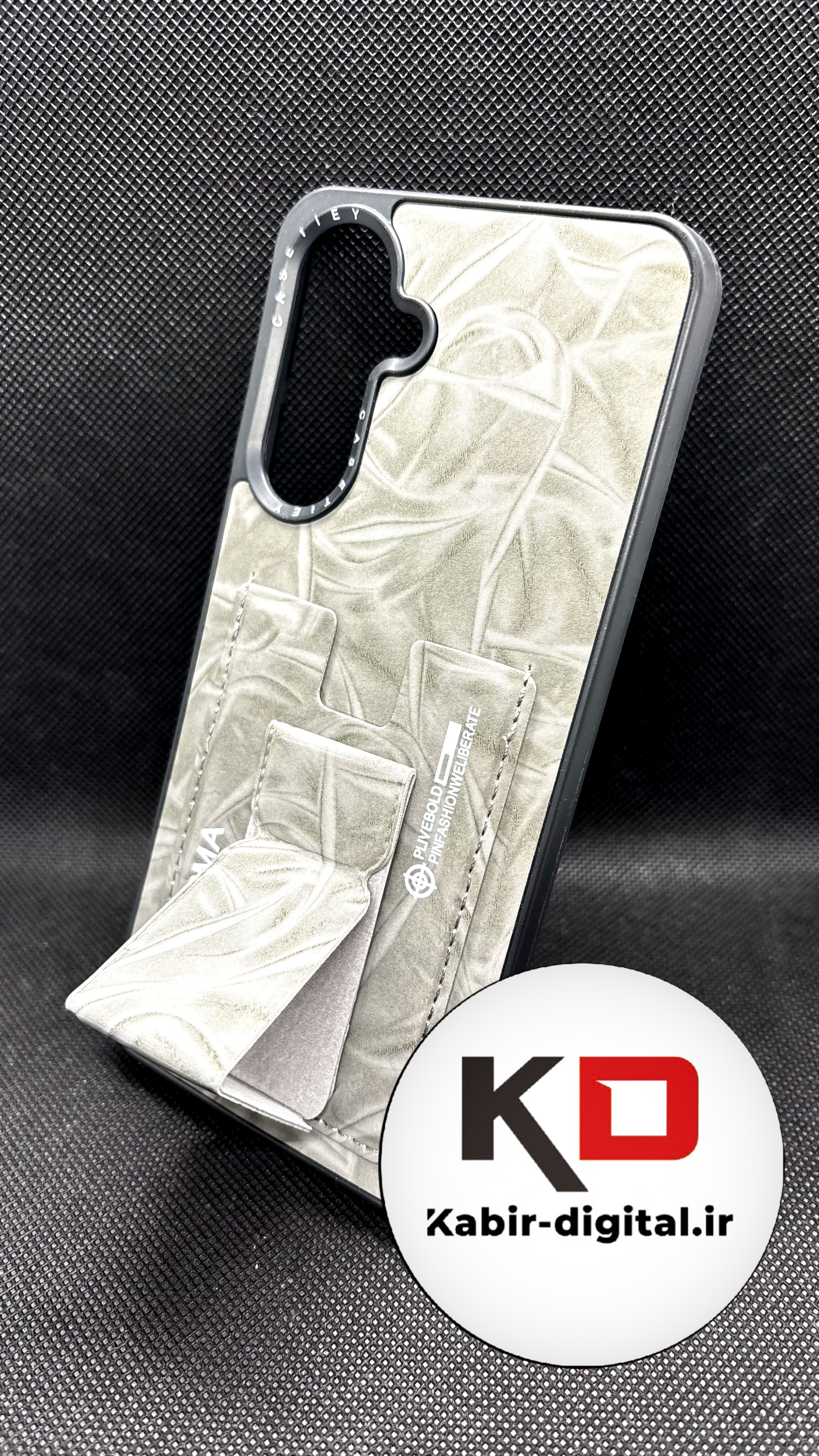 قاب گوشی Galaxy A16 سامسونگ چرمی اورجینال پولو POLO طرح دار جاکارتی دار مگنتی استندشو دور دوخت طوسی