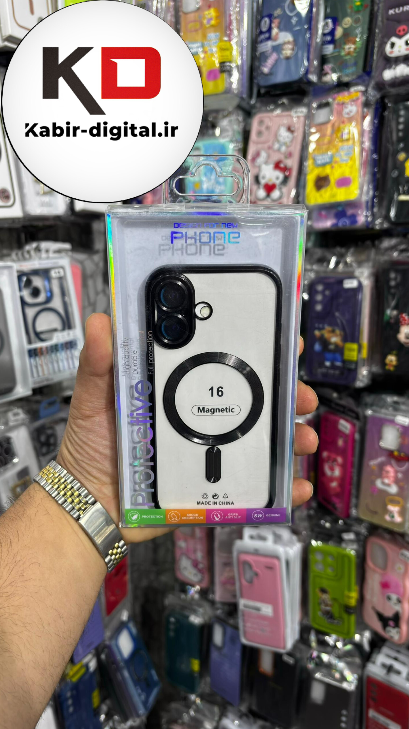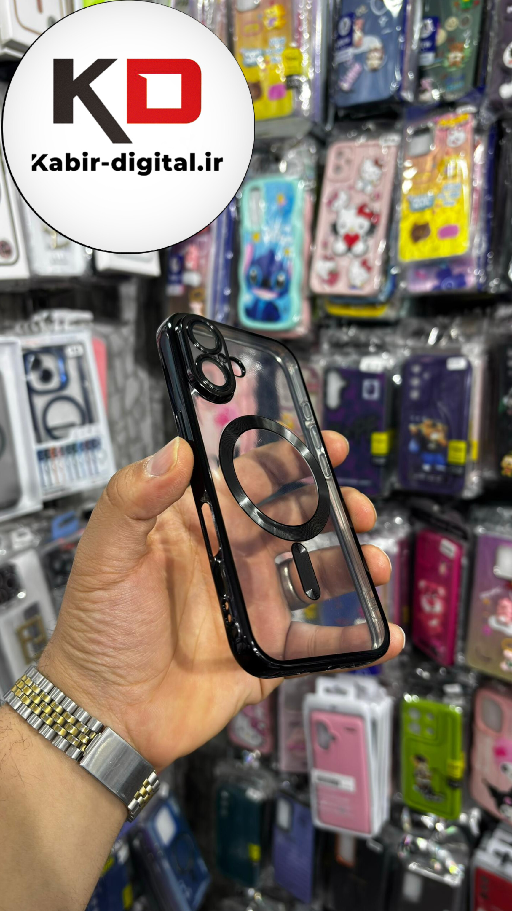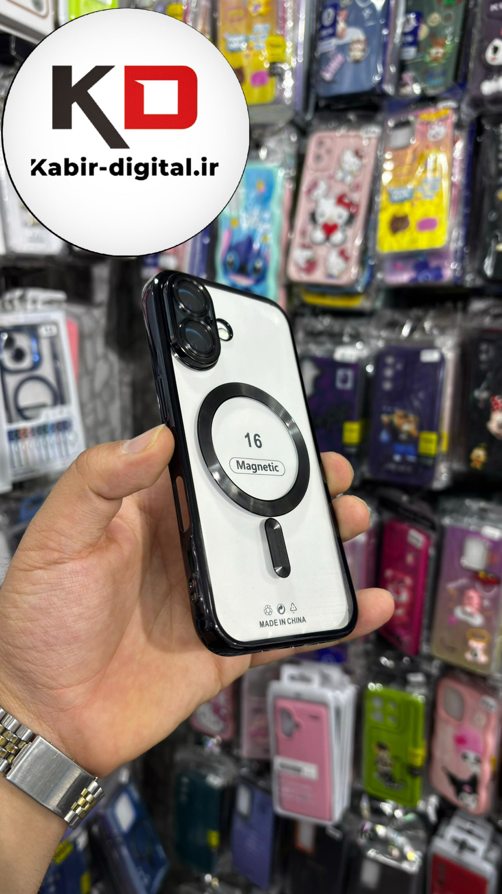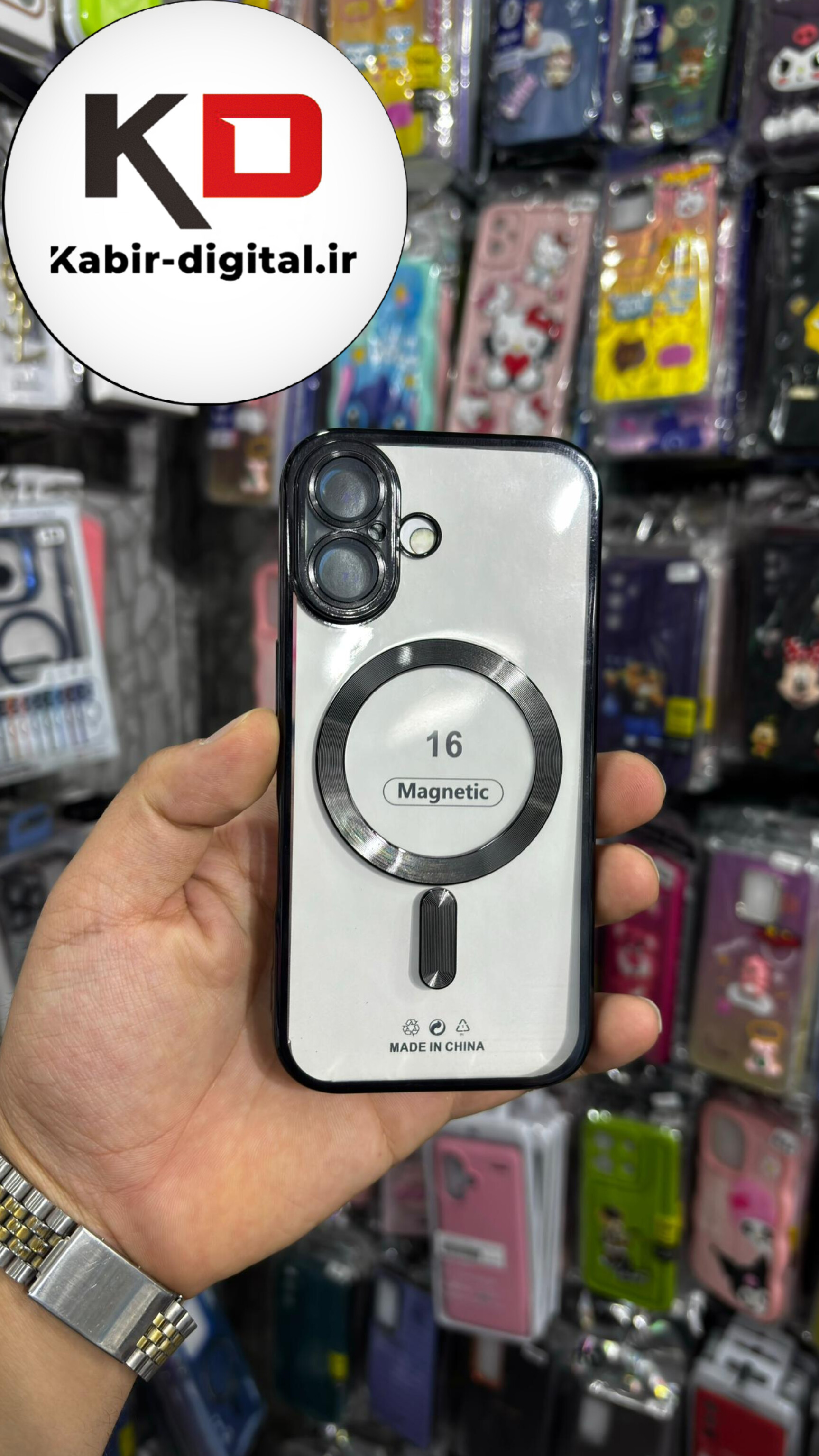قاب گوشی iPhone 16 آیفون الکترواستاتیک اورجینال مگ سیف محافظ لنز دار گلسی مشکی