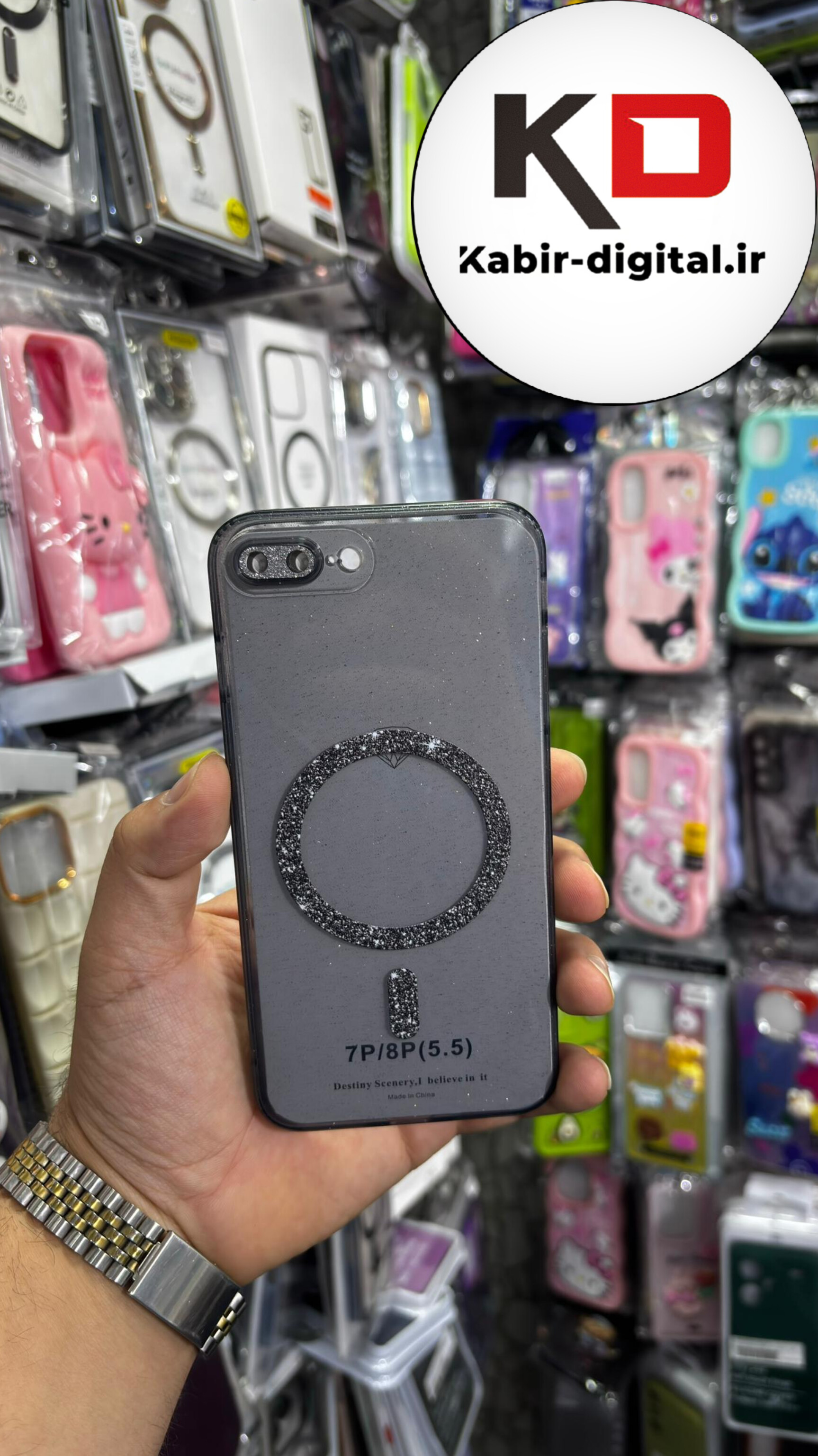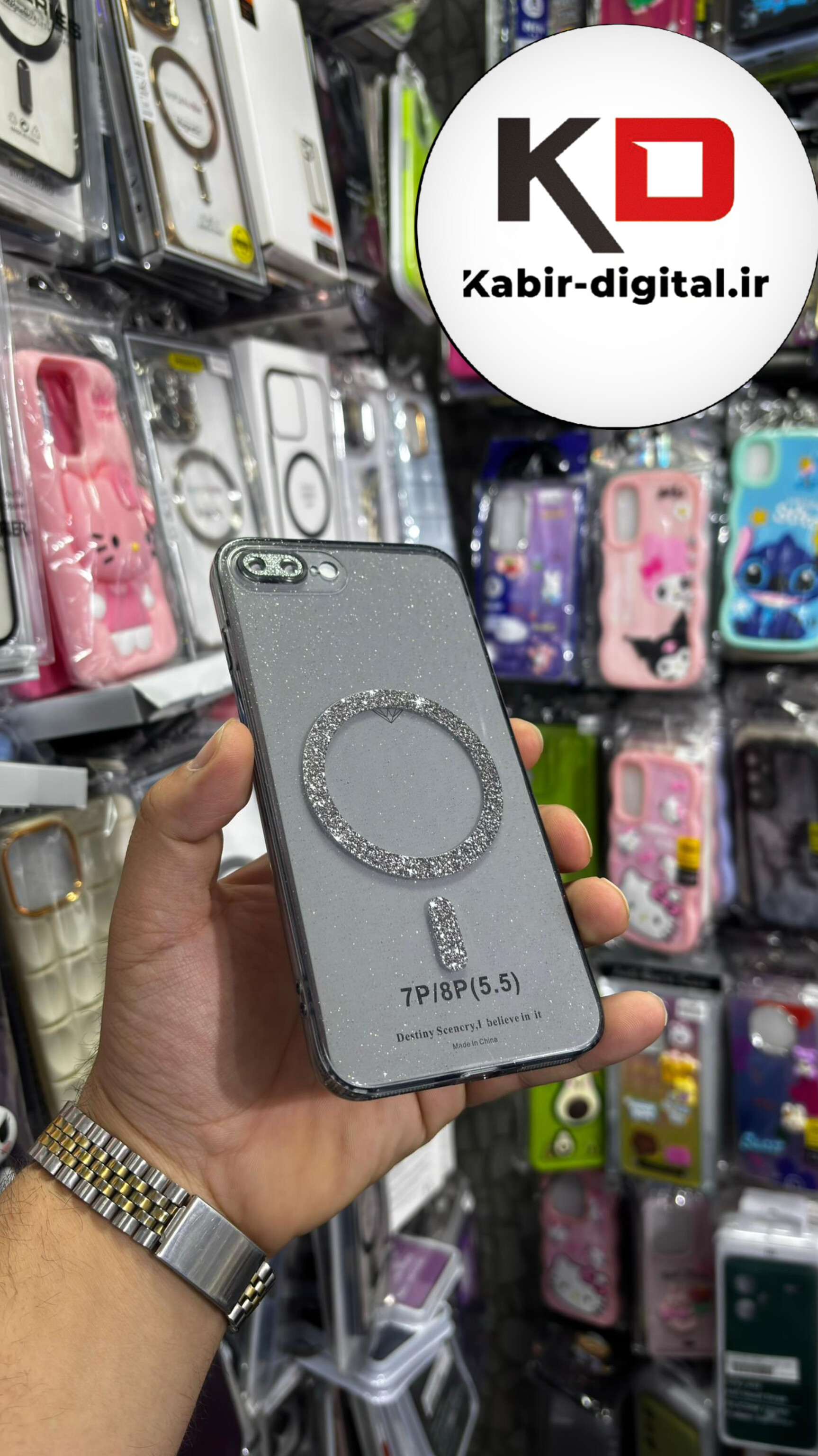 قاب گوشی iPhone 8 plusآیفون الکتروپلیتینگ ژله ای شفاف اورجینال طرح مگ سیف شاین دار محافظ لنز دار مشکی