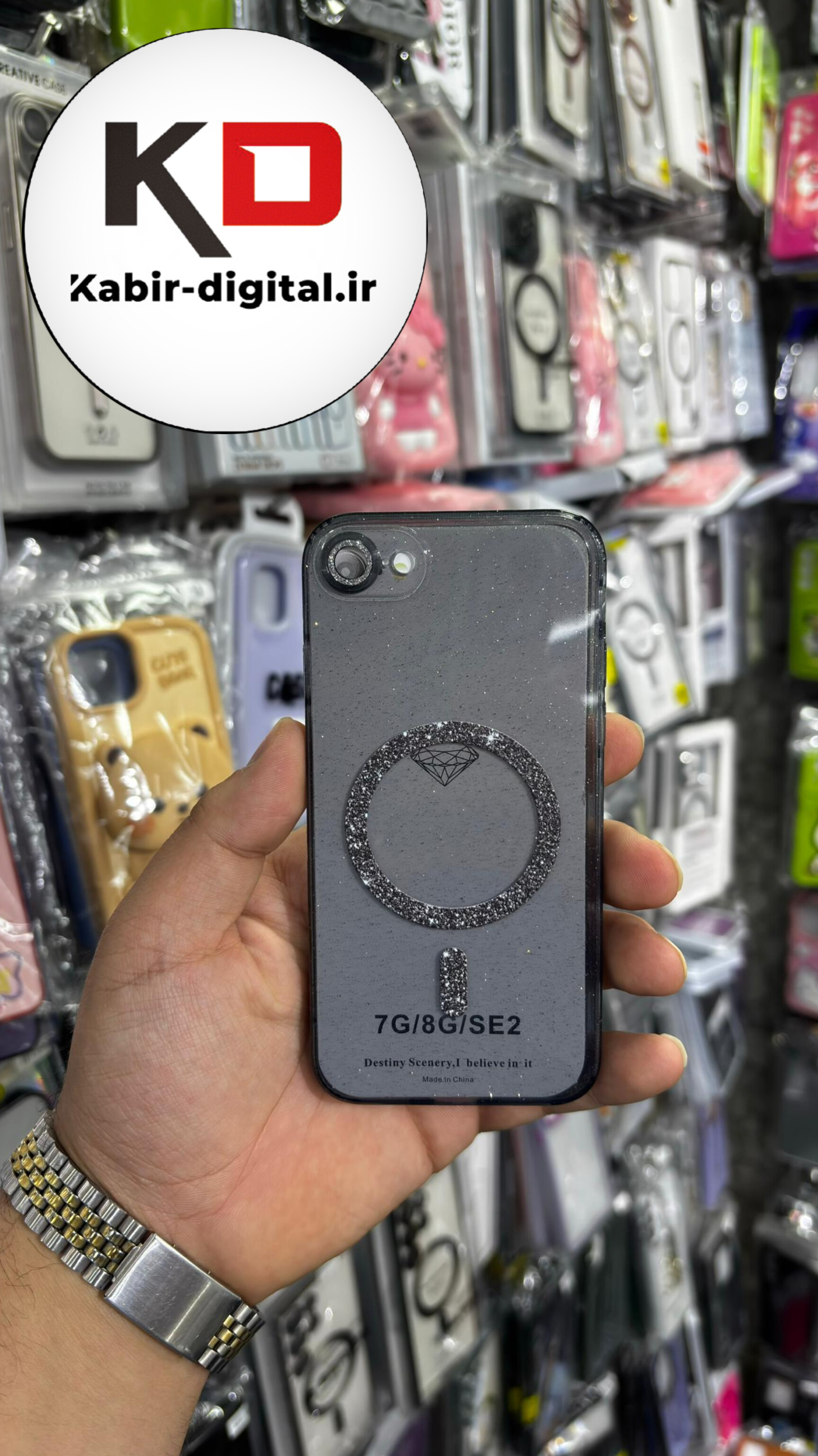 قاب گوشی iPhone 7/8آیفون الکتروپلیتینگ ژله ای شفاف اورجینال طرح مگ سیف شاین دار محافظ لنز دار مشکی