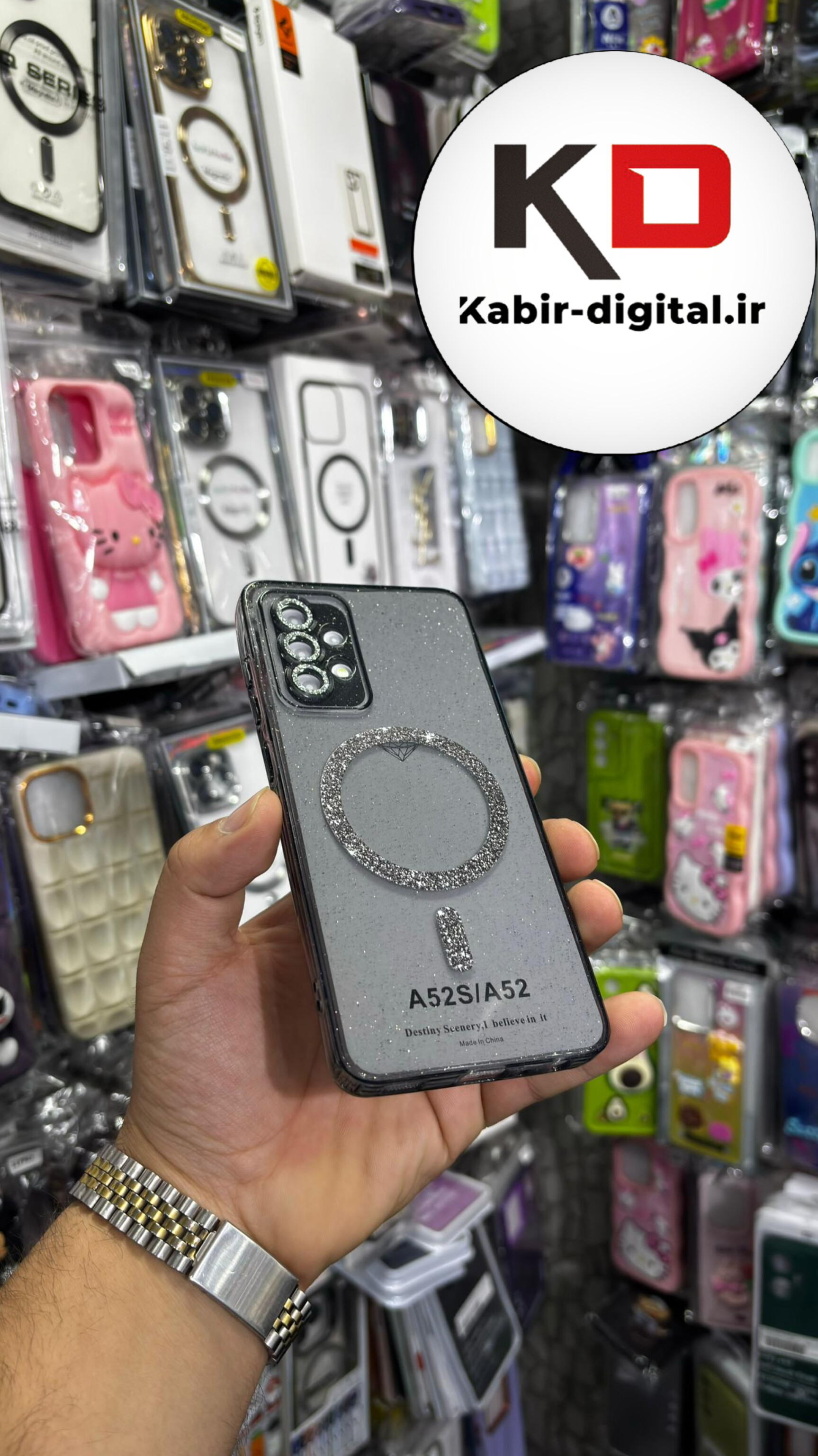 قاب گوشی Galaxy A52 / A52s سامسونگ الکتروپلیتینگ ژله ای شفاف اورجینال طرح مگ سیف نگین دار شاین محافظ لنز دار مشکی