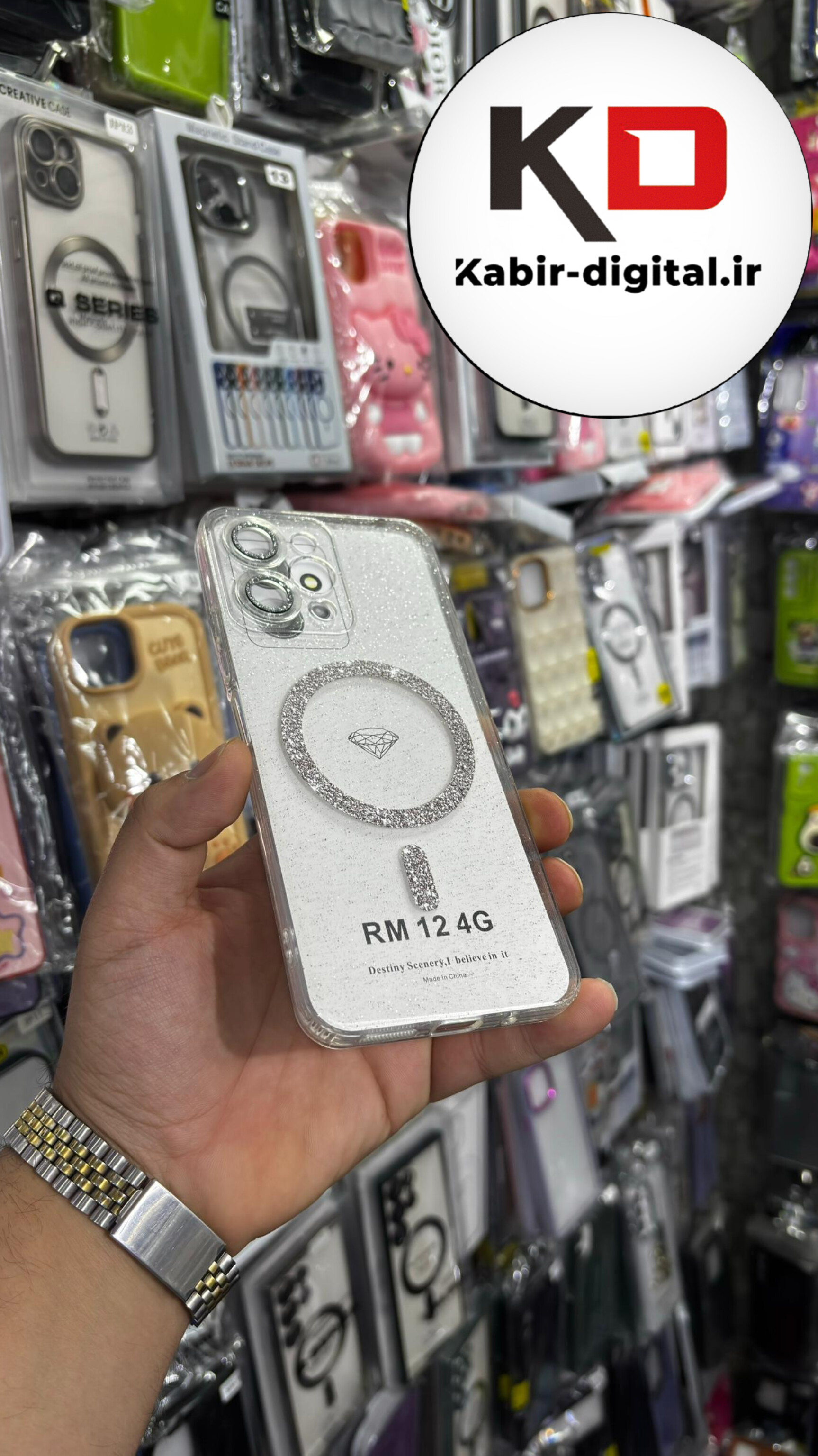 قاب گوشی Redmi 12شیائومی الکتروپلیتینگ ژله ای شفاف اورجینال طرح مگ سیف نگین دار شاین محافظ لنز دار سفید