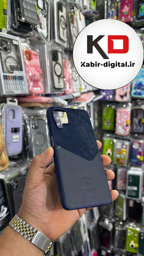 قاب گوشی Galaxy A12/M12 سامسونگ طرح دو تیکه پارچه و چرم کلاسیک HARD چرمی پولوکا PULOKA جاکارتی دار چرمی سرمه ایی