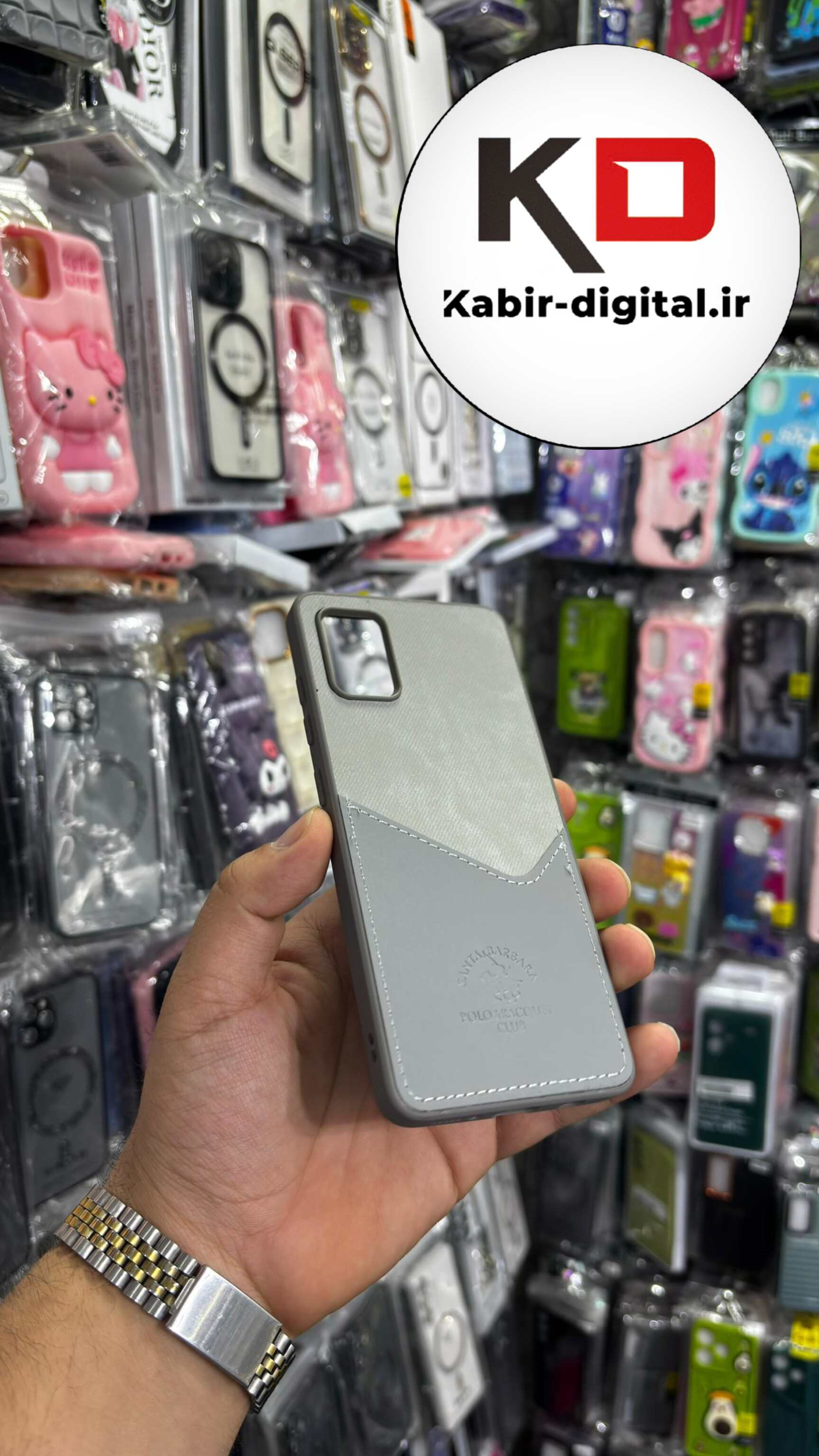 قاب گوشی Galaxy A51 سامسونگ طرح دو تیکه پارچه و چرم کلاسیک HARD چرمی پولو PULO جاکارتی دار چرمی خاکستری