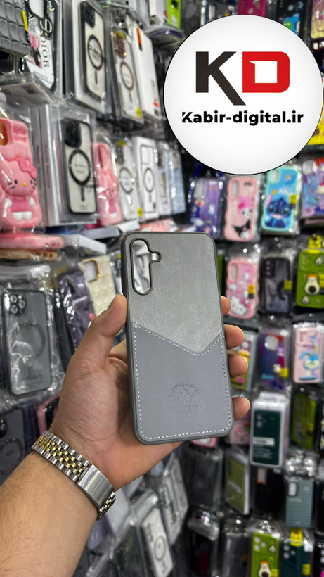 قاب گوشی Galaxy A25 سامسونگ طرح دو تیکه پارچه و چرم کلاسیک HARD چرمی پولو PULO جاکارتی دار چرمی خاکستری