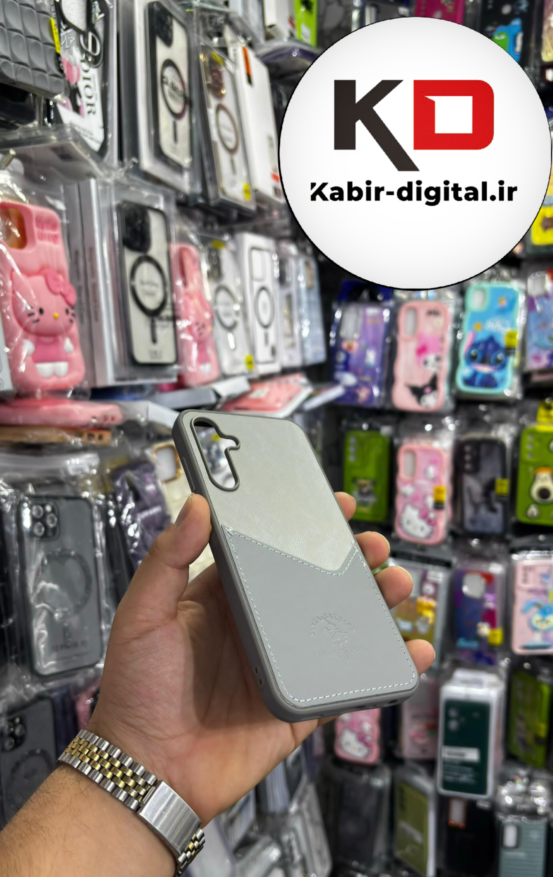 قاب گوشی Galaxy A25 سامسونگ طرح دو تیکه پارچه و چرم کلاسیک HARD چرمی پولو PULO جاکارتی دار چرمی خاکستری