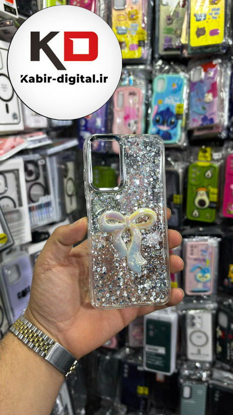 قاب گوشی Redmi Note 10/ Note 10s / POCO M5sشیائومی فانتزی برجسته رزینی Luxury Case طرح پاپیون کرومی سفید