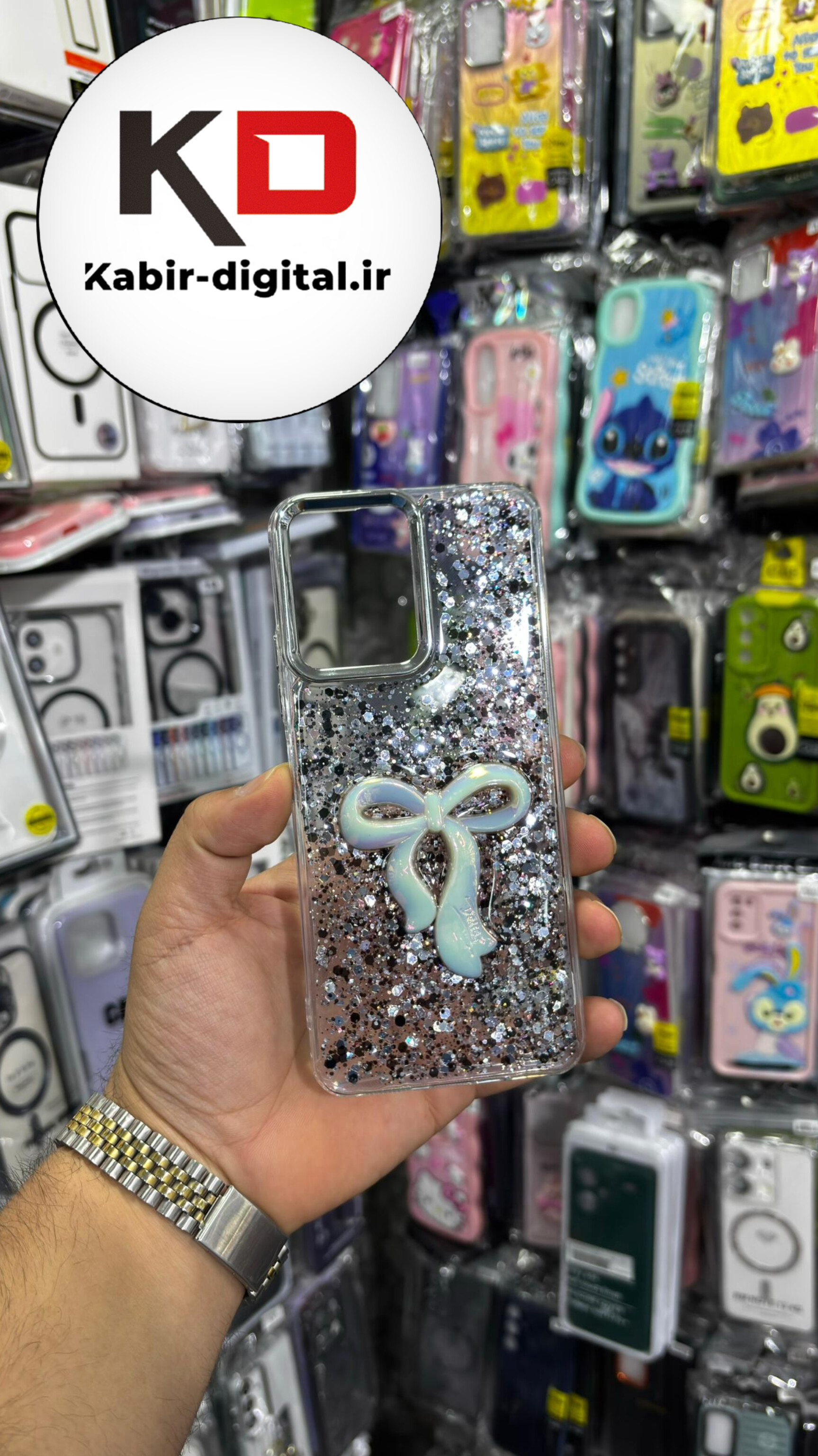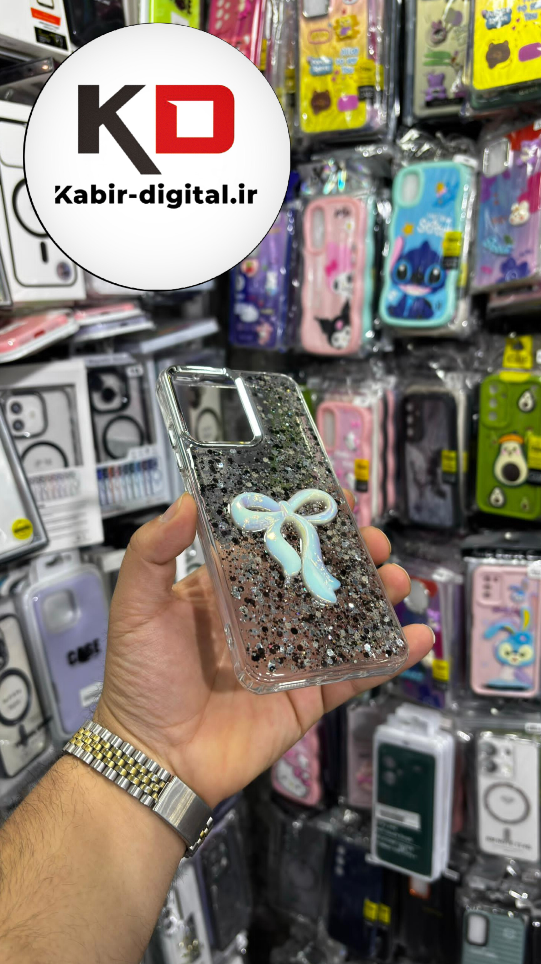قاب گوشی Redmi 13C / POCO C65شیائومی فانتزی برجسته رزینی Luxury Case طرح پاپیون کرومی مشکی