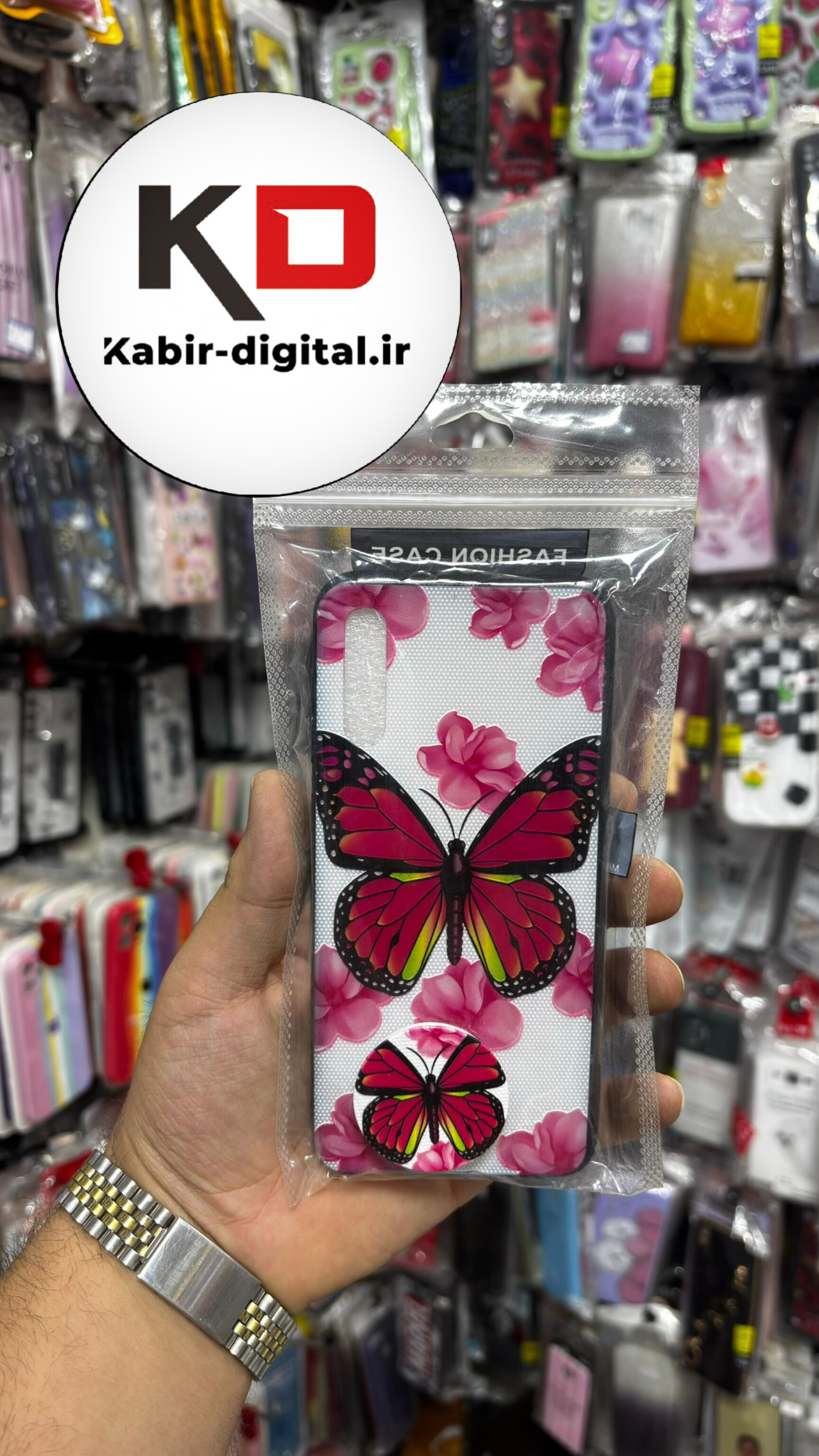 قاب گوشی Galaxy A30s/A50/A50s سامسونگ فانتزی سوزنی برجسته طرح پروانه صورتی پاپ سوکت دار محافظ لنز دار