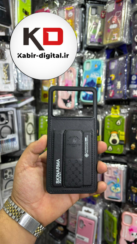 قاب گوشی POCO X6 Pro شیائومی چرمی اورجینال پولو POLO طرح دار جاکارتی دار مگنتی استندشو دور دوخت مشکی