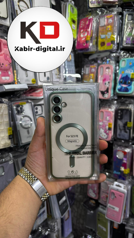 قاب گوشی Galaxy S23 FEسامسونگ طرح الکتروپلیتینگ ژله ای شفاف اورجینال طرح مگ سیف محافظ لنز دار سبز