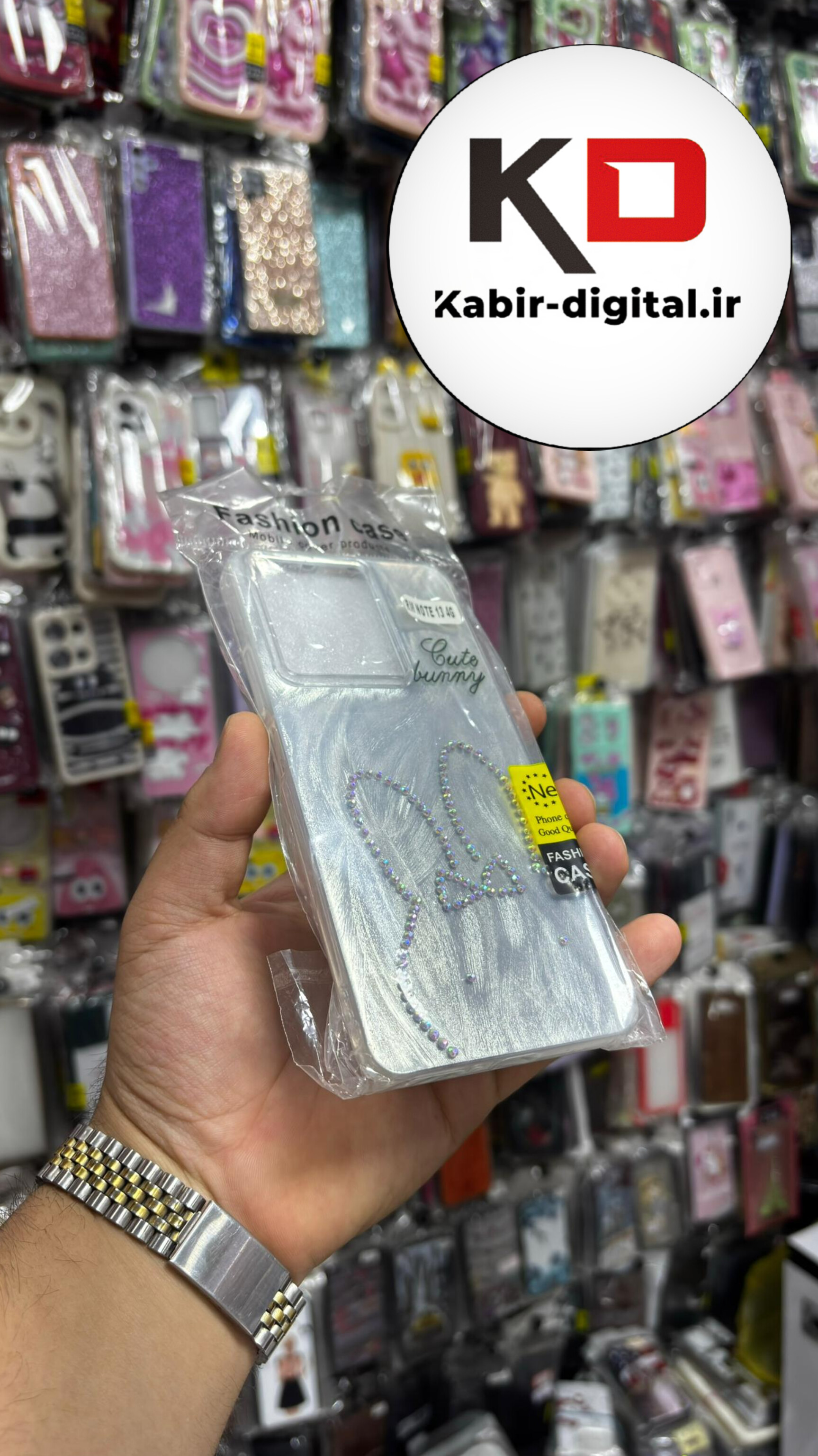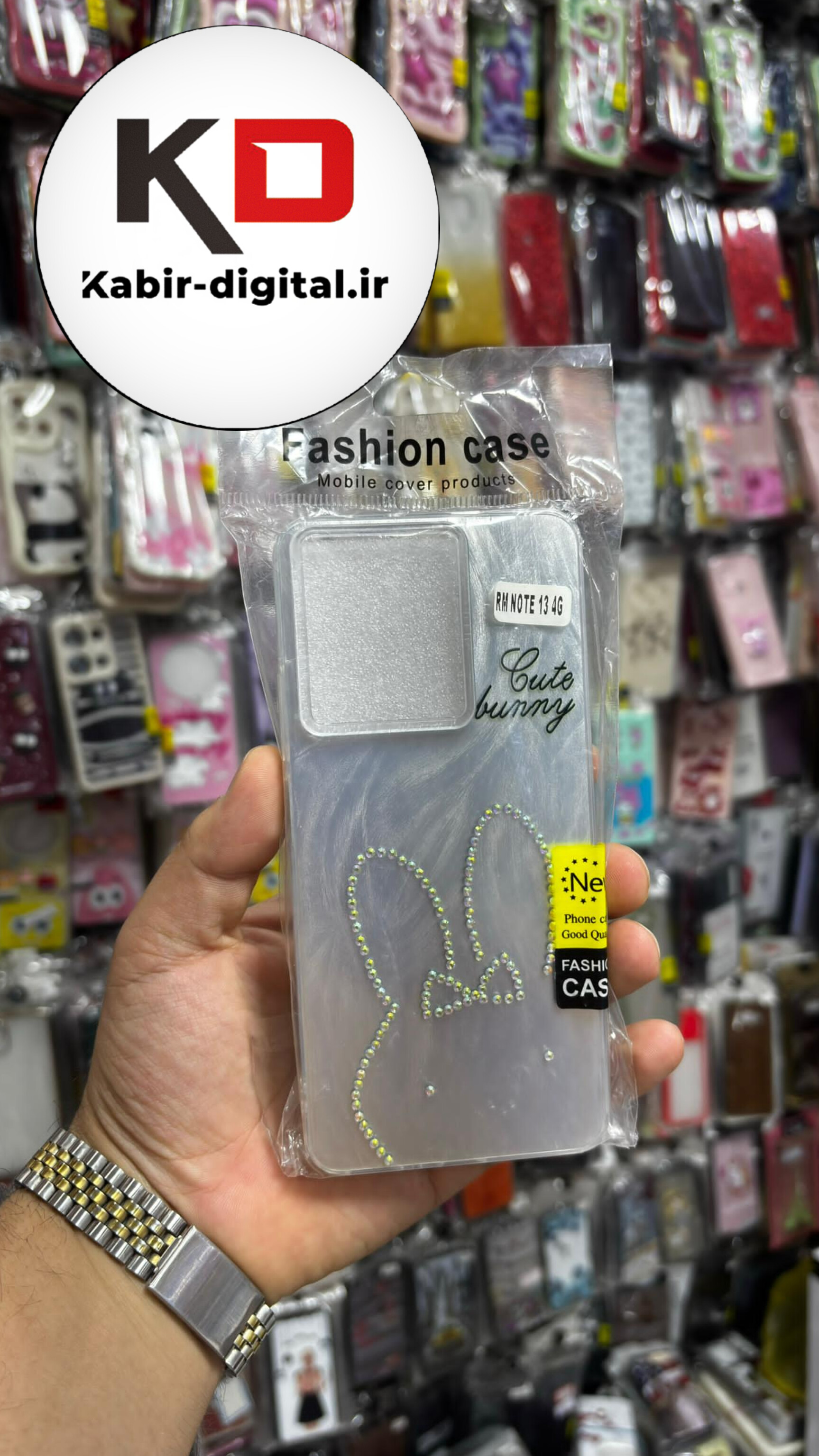 قاب گوشیRedmi Note 13 شیائومی موج دار سخت Hard لیزری لاکچری کیس نگین دار دور شفاف طرح خرگوش