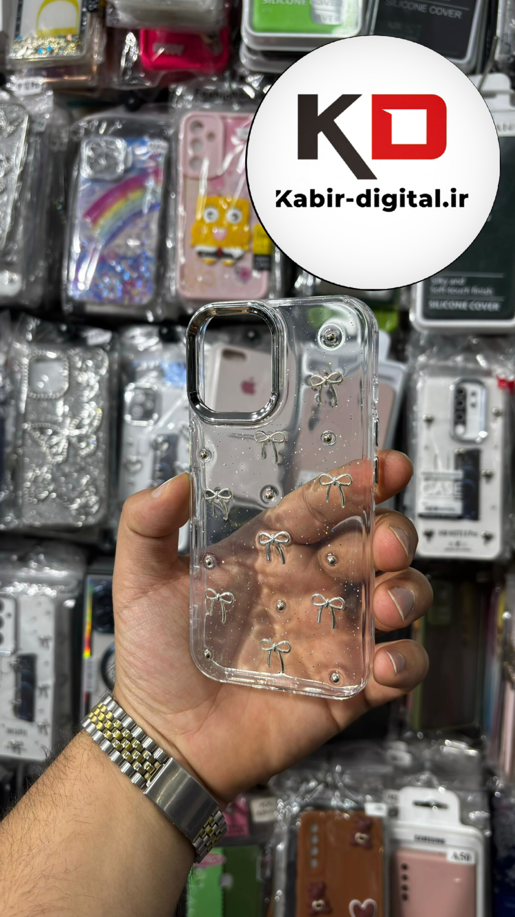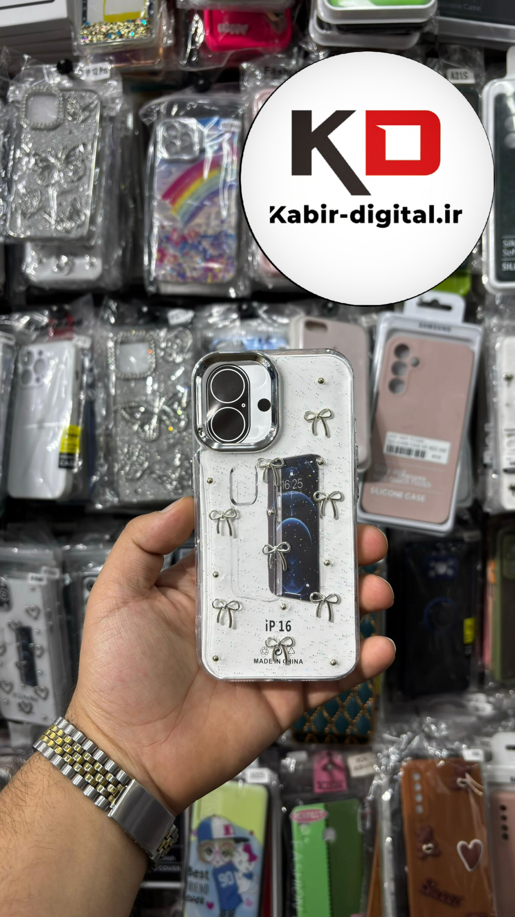 قاب گوشی iPhone 16 آیفون لاکچری شفاف رزینی طرح شاین لنز کرومی طرح پاپیون کرومی