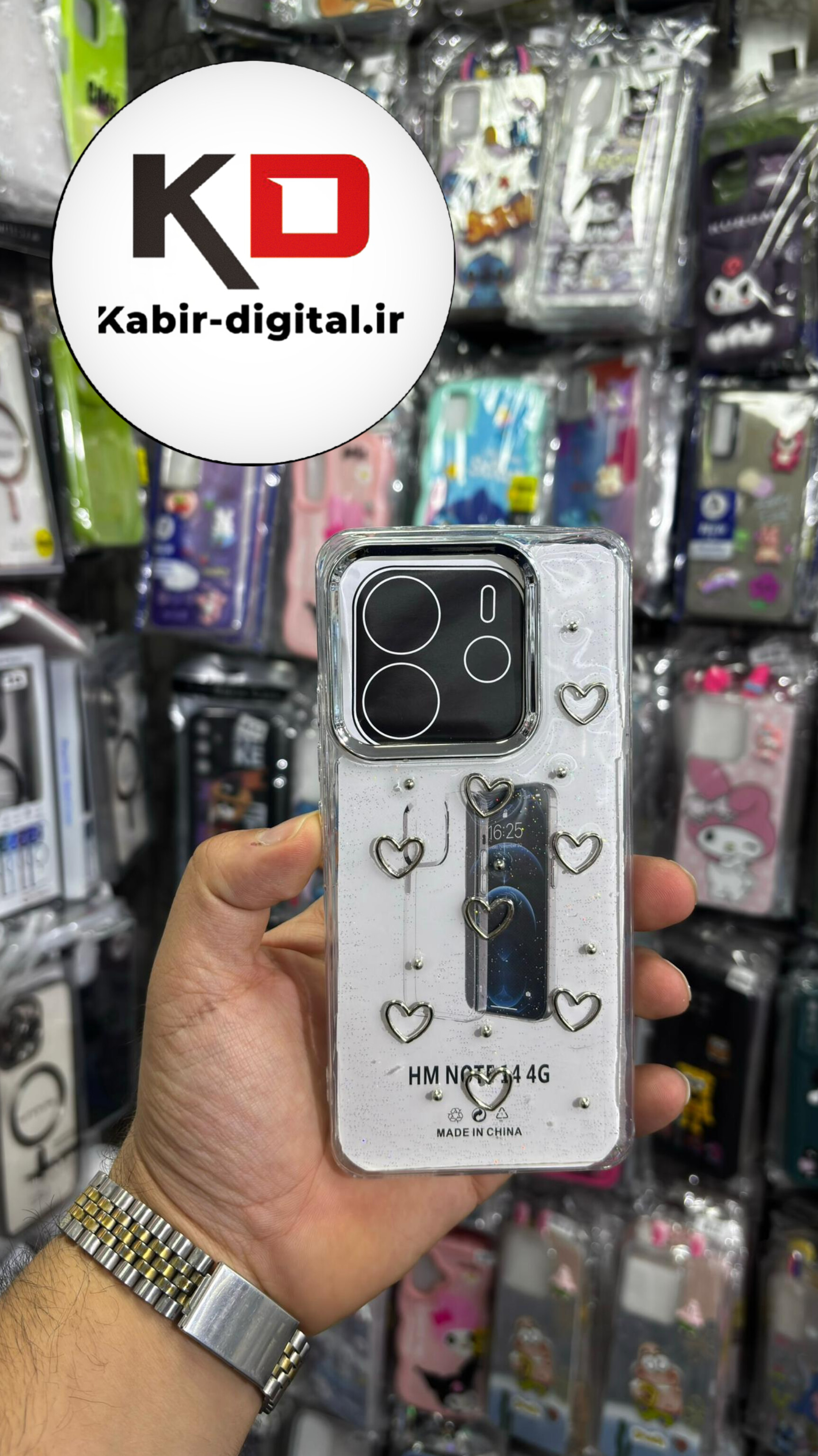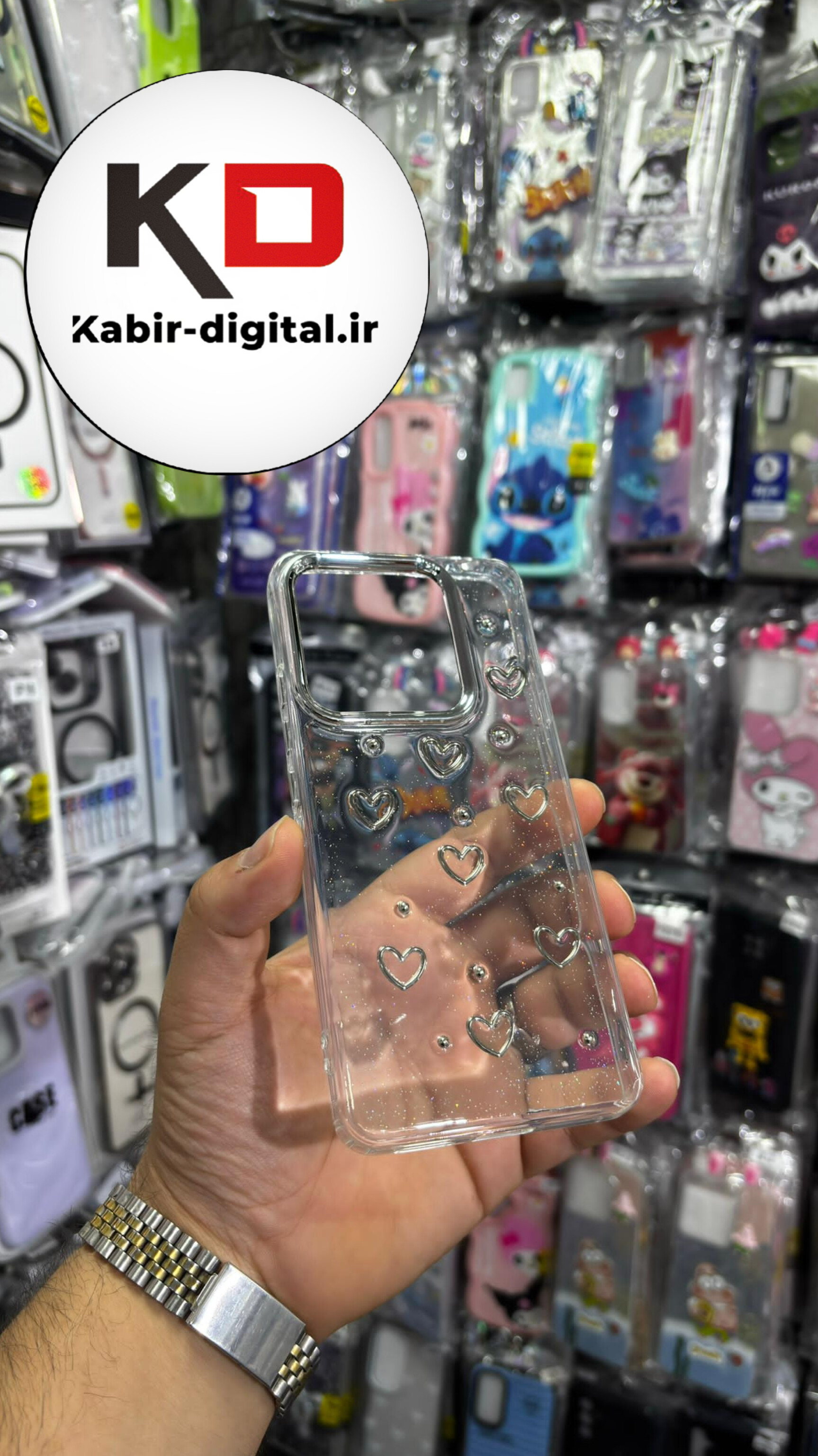 قاب گوشی Redmi Note 14 4G شیائومی لاکچری شفاف رزینی طرح شاین لنز کرومی طرح قلب