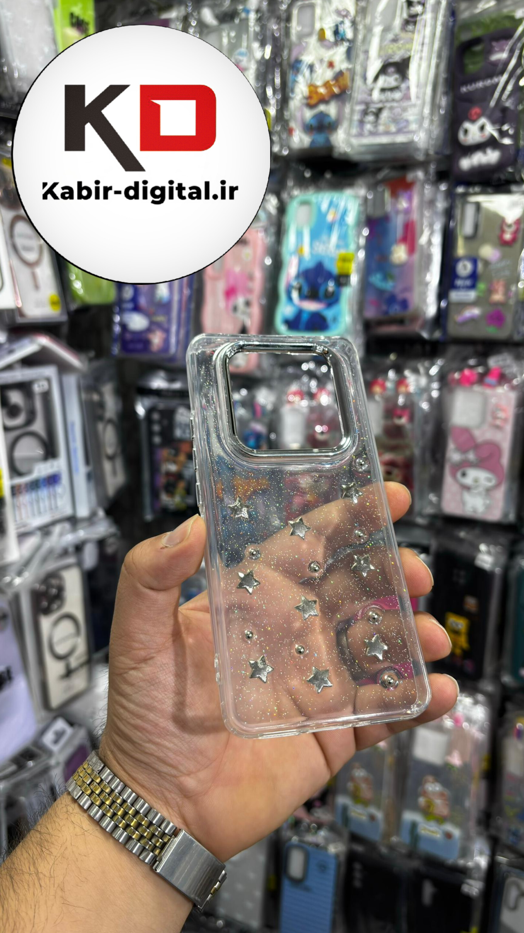 قاب گوشی Redmi Note 14 Pro 4G/5G/Note 14 Pro Plus شیائومی لاکچری شفاف رزینی طرح شاین لنز کرومی طرح ستاره