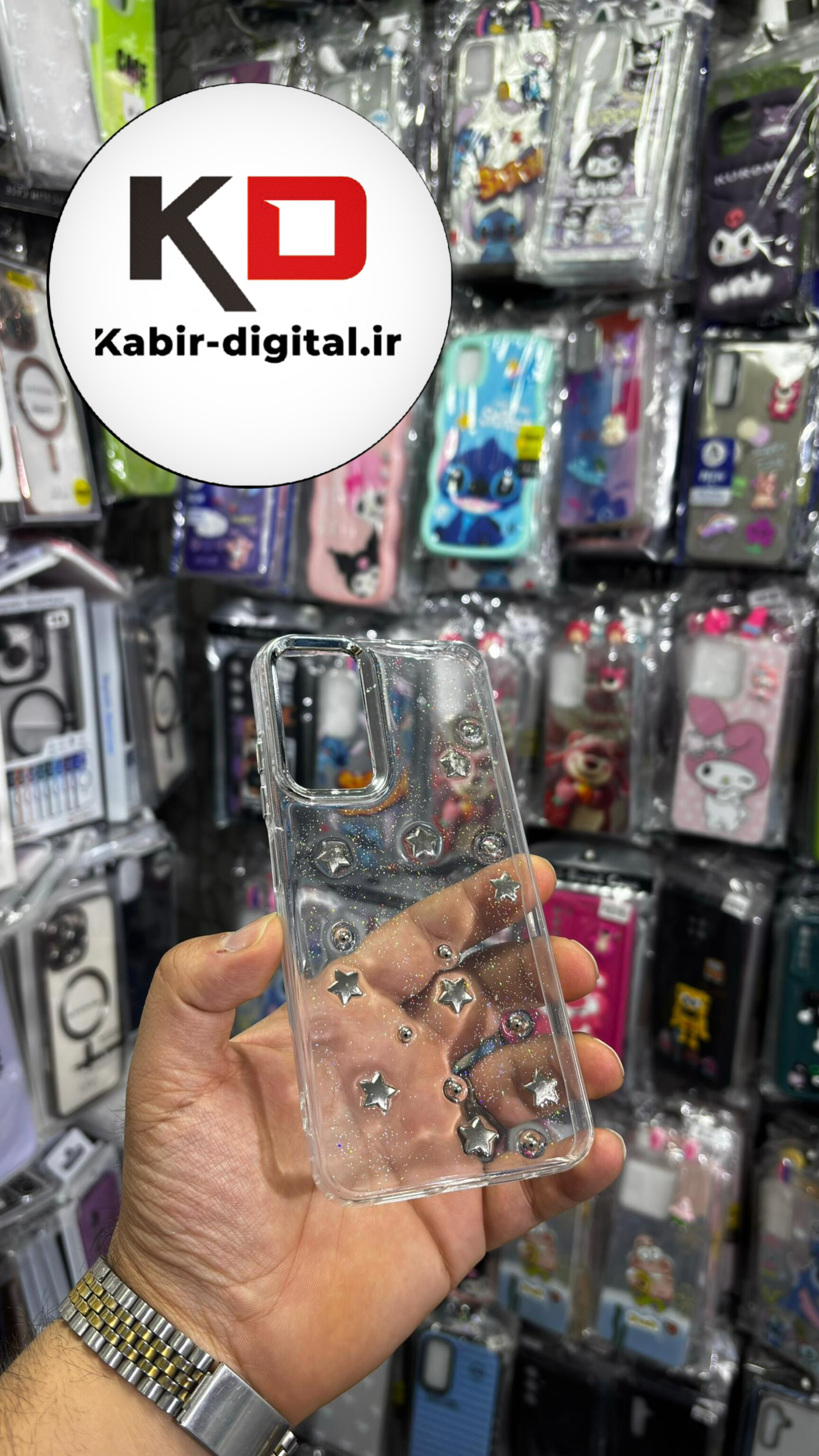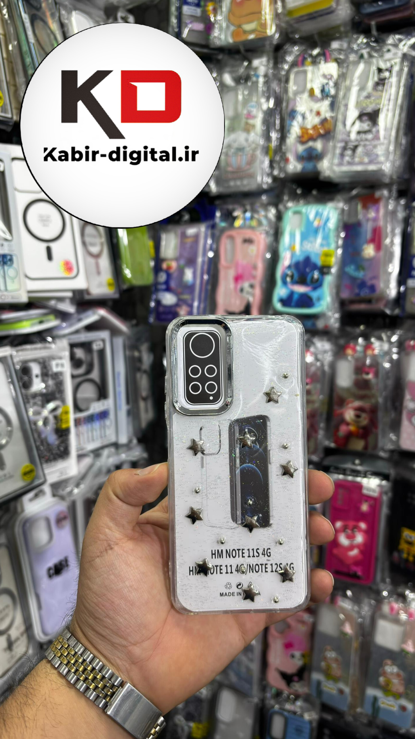 قاب گوشی Redmi Note 11/Note 11s/Note 12s شیائومی لاکچری شفاف رزینی طرح شاین لنز کرومی طرح ستاره