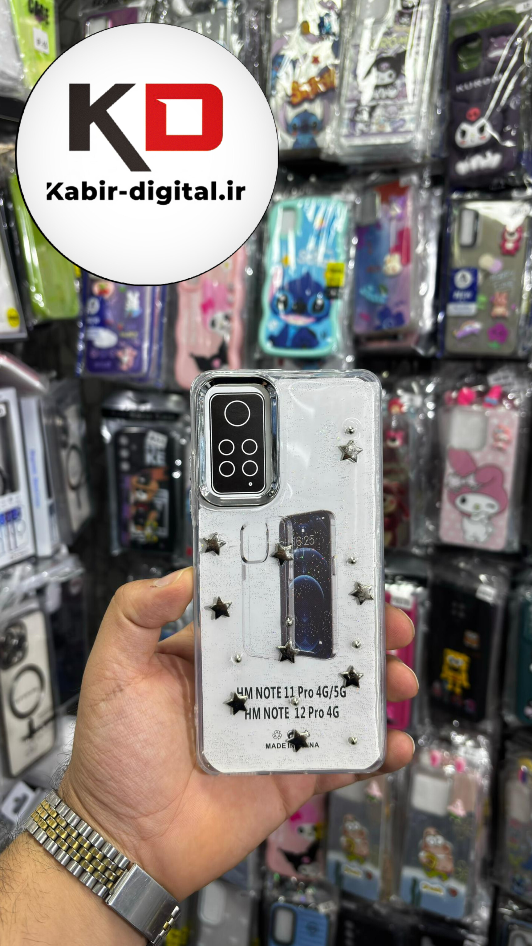قاب گوشی Redmi Note 11 Pro 4G /Note 12 Pro 4G شیائومی لاکچری شفاف رزینی طرح شاین لنز کرومی طرح ستاره