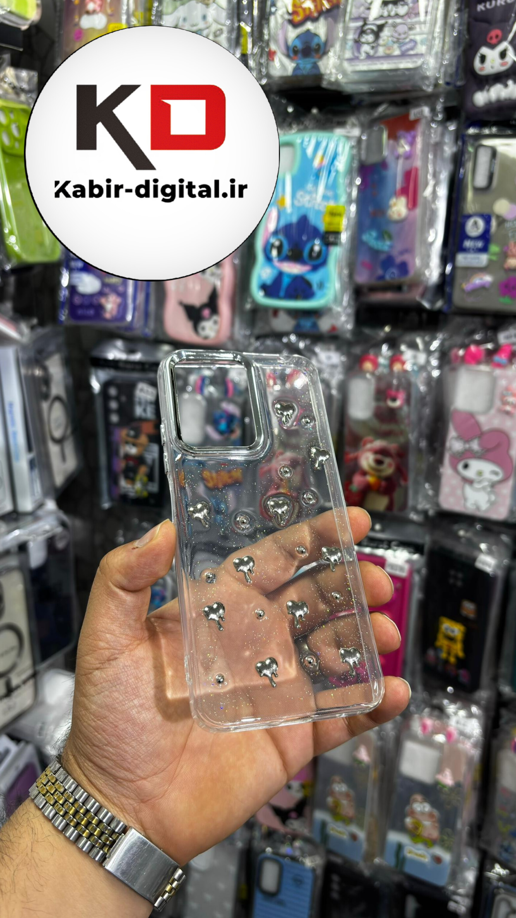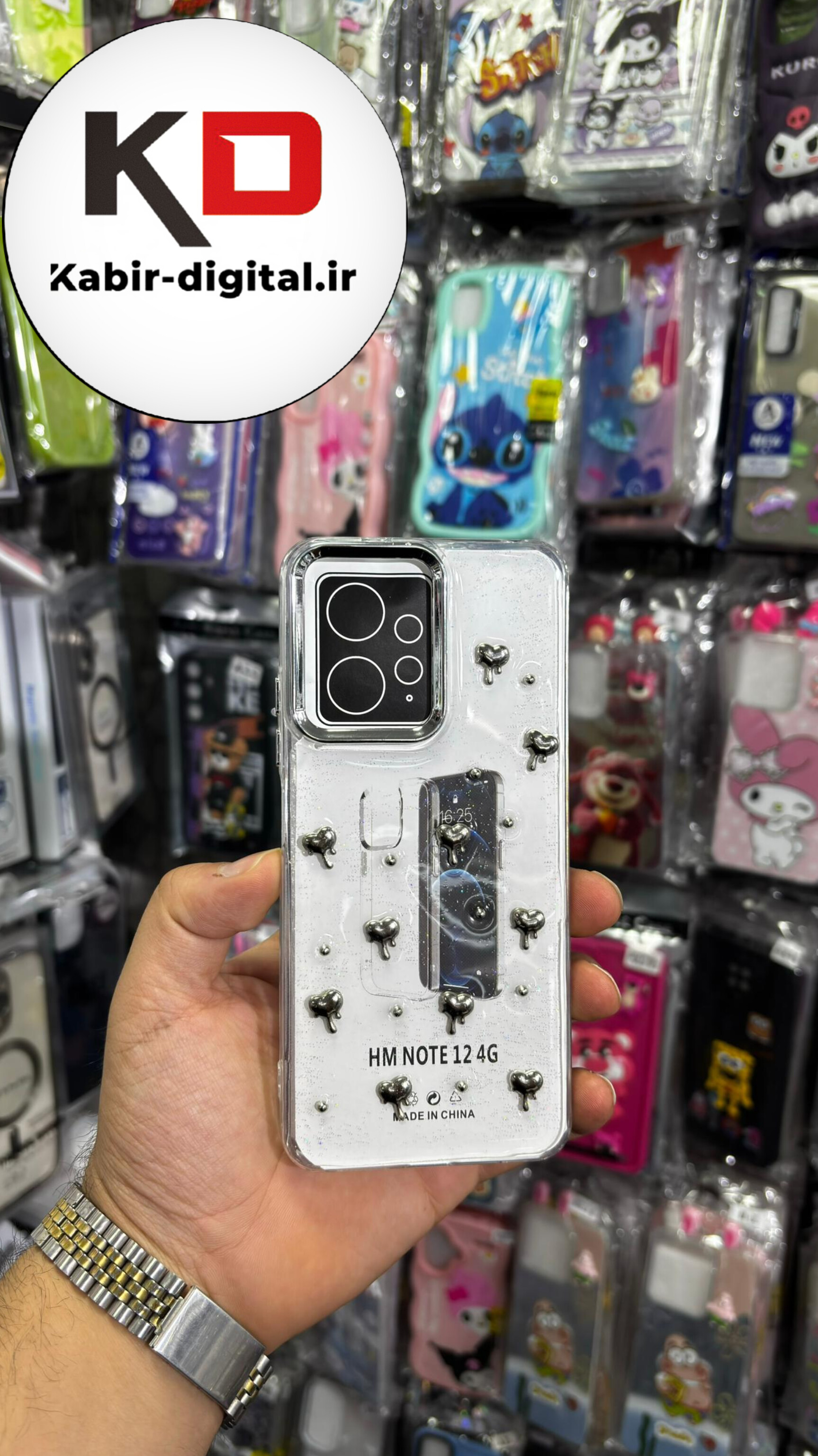 قاب گوشی Redmi Note 12 4G شیائومی لاکچری شفاف رزینی طرح شاین لنز کرومی طرح قلب