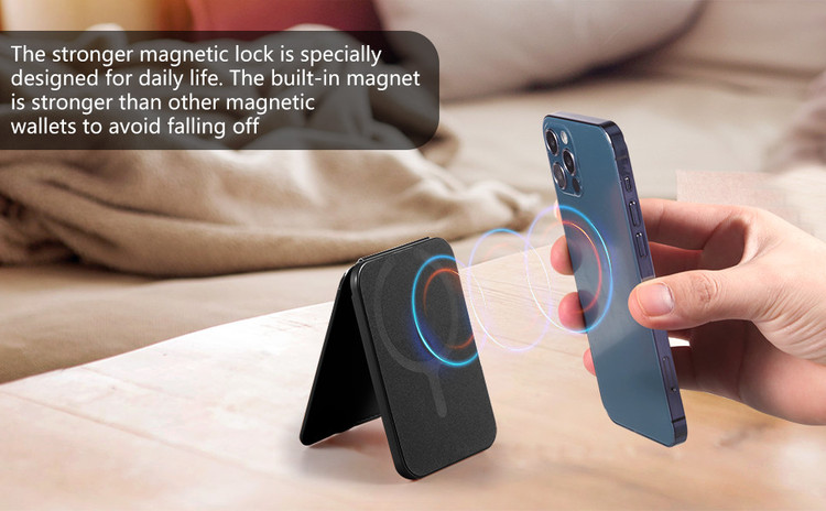 مگنتهای قوی برای مهارت محکم: مگنتهای قوی در این محصول به شما اجازه میدهند که گوشی خود را به صورت مطمئنی متصل کنید و نگران افتادن آن نباشید. با نصب حلقه فلزی کمکی، حتی میتوانید این جاکارتی را روی گوشیهایی که دارای ویژگی MagSafe نیستند، قرار دهید تا یک ظاهر منحصر به فرد بسازید. همچنین، این جاکارتی دارای سپر ضد دیگوسی است که اطمینان میدهد که کارتهای اعتباری شما در امان باشند.
