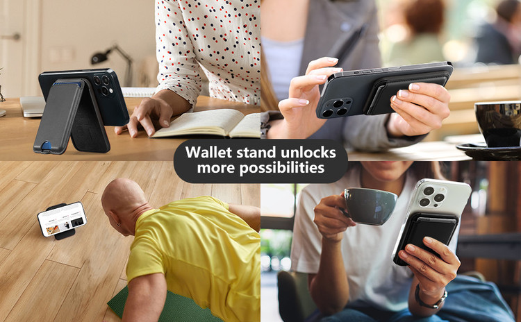 استند 2 در 1 با قابلیت ایستادهای در حالت عمودی یا افقی: یکی از ویژگیهای برجسته این جاکارتی و استند مگنتی این است که به شما امکان ایستادهای در حالتهای عمودی و افقی را میدهد. این ویژگی به شما اجازه میدهد تا بتوانید گوشی خود را برای خواندن، تماشای ویدئوها یا مکالمه تصویری به راحتی و به دلخواه خود قرار دهید.