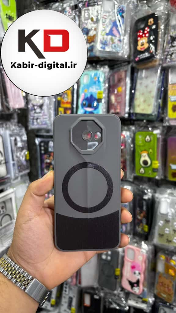 قاب گوشی Galaxy J4 plus سامسونگ سری Porsche Design پورش دیزاین Hard LUXURY طرح مگسیف دار محافظ لنز دار خاکستری