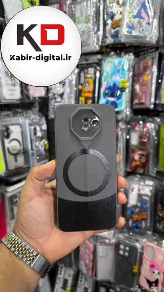 قاب گوشی Galaxy J6 Plus سامسونگ سری Porsche Design پورش دیزاین Hard LUXURY طرح مگسیف دار محافظ لنز دار خاکستری