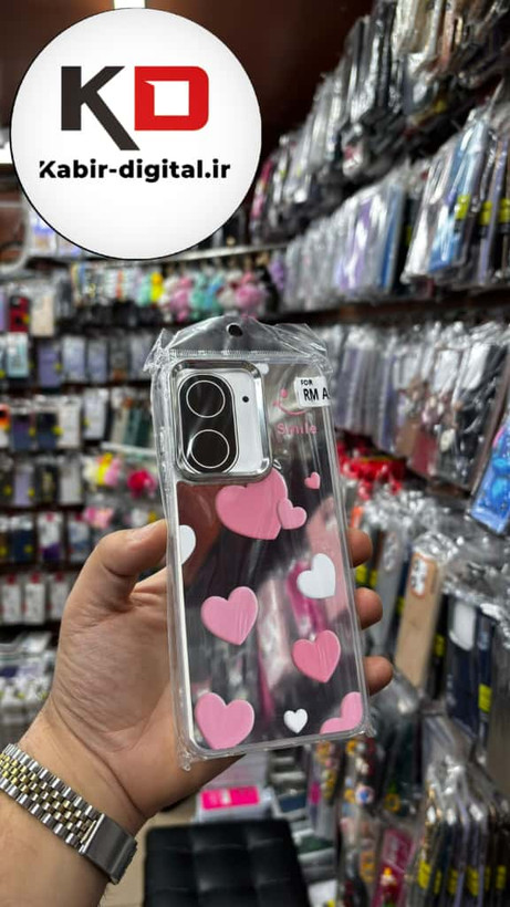 قاب گوشی Redmi A5 / POCO C71 شیائومی اورجینال فانتزی سخت آینه ای لنز کرومی ایربگ دار طرح قلب صورتی کیوت