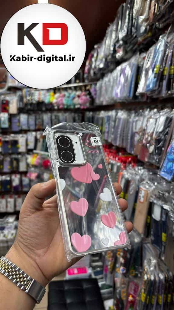 قاب گوشی Redmi A5 / POCO C71 شیائومی اورجینال فانتزی سخت آینه ای لنز کرومی ایربگ دار طرح قلب صورتی کیوت