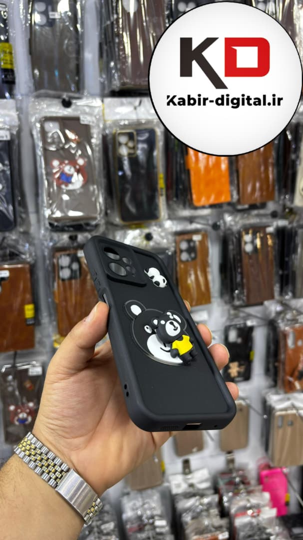 قاب گوشی Note 12 4G شیائومی طرح سیلیکونی Solid عروسکی برجسته محافظ لنز دار طرح خرس مشکی