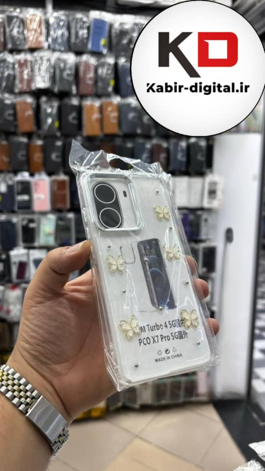 قاب گوشی Redmi turbo 4 5g / POCO X7 PRO شیائومی لاکچری شفاف رزینی طرح شاین لنز کرومی طرح پروانه طلایی