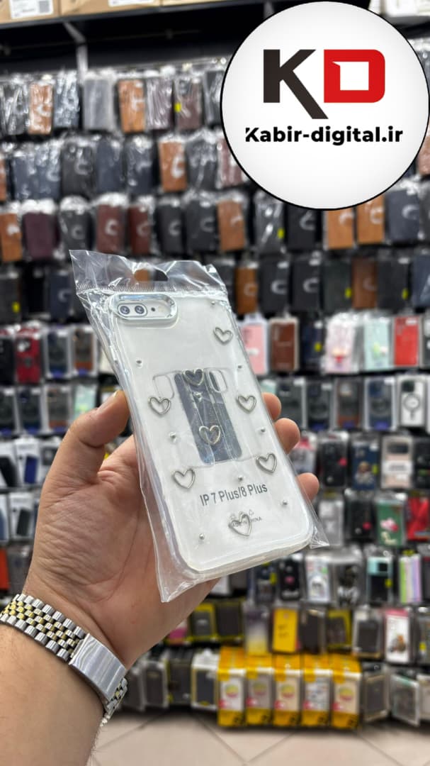قاب گوشی iPhone 7 Plus / 8 plus آیفون لاکچری شفاف رزینی طرح شاین لنز کرومی طرح قلبی