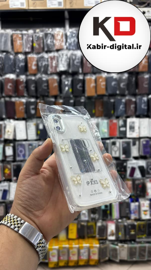 قاب گوشی iPhone Xs / X آیفون لاکچری شفاف رزینی طرح شاین لنز کرومی طرح پروانه طلایی