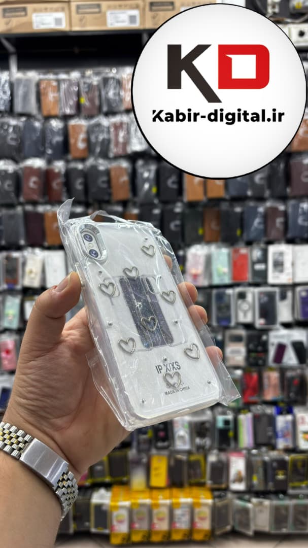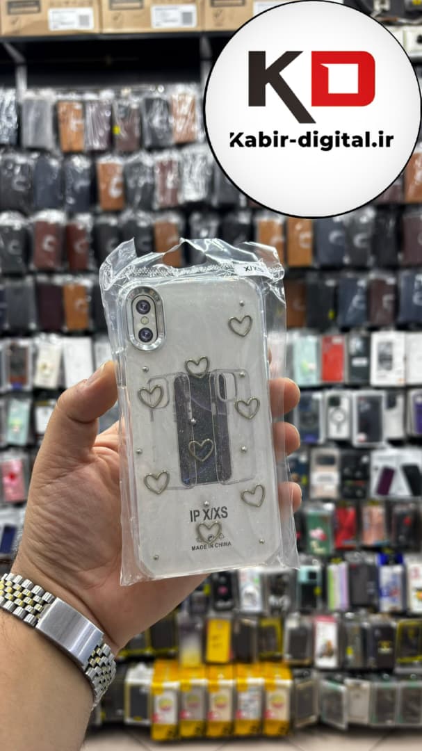 قاب گوشی iPhone Xs / X آیفون لاکچری شفاف رزینی طرح شاین لنز کرومی طرح قلبی