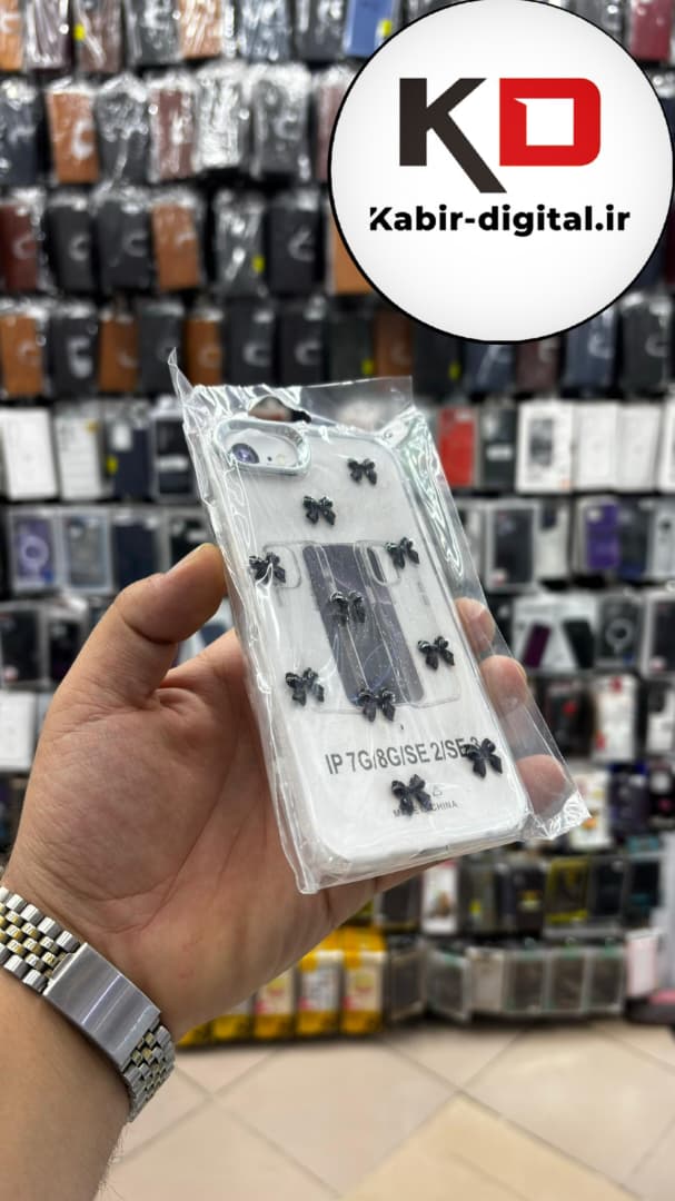 قاب گوشی iPhone 7 / 8 / SE آیفون لاکچری شفاف رزینی طرح شاین لنز کرومی طرح پاپیون مشکی