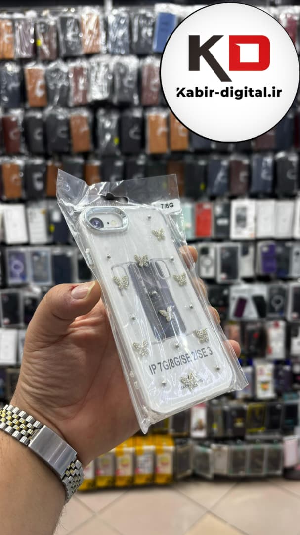 قاب گوشی iPhone 7 / 8 / SE آیفون لاکچری شفاف رزینی طرح شاین لنز کرومی طرح پروانه نگین دار