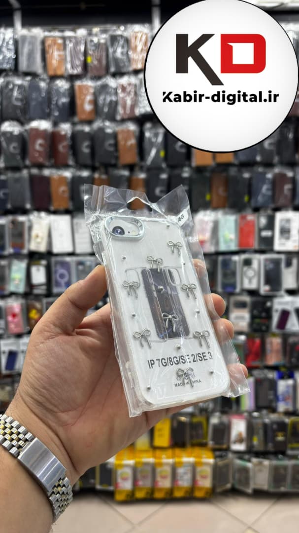 قاب گوشی iPhone 7 / 8 / SE آیفون لاکچری شفاف رزینی طرح شاین لنز کرومی طرح پاپیون