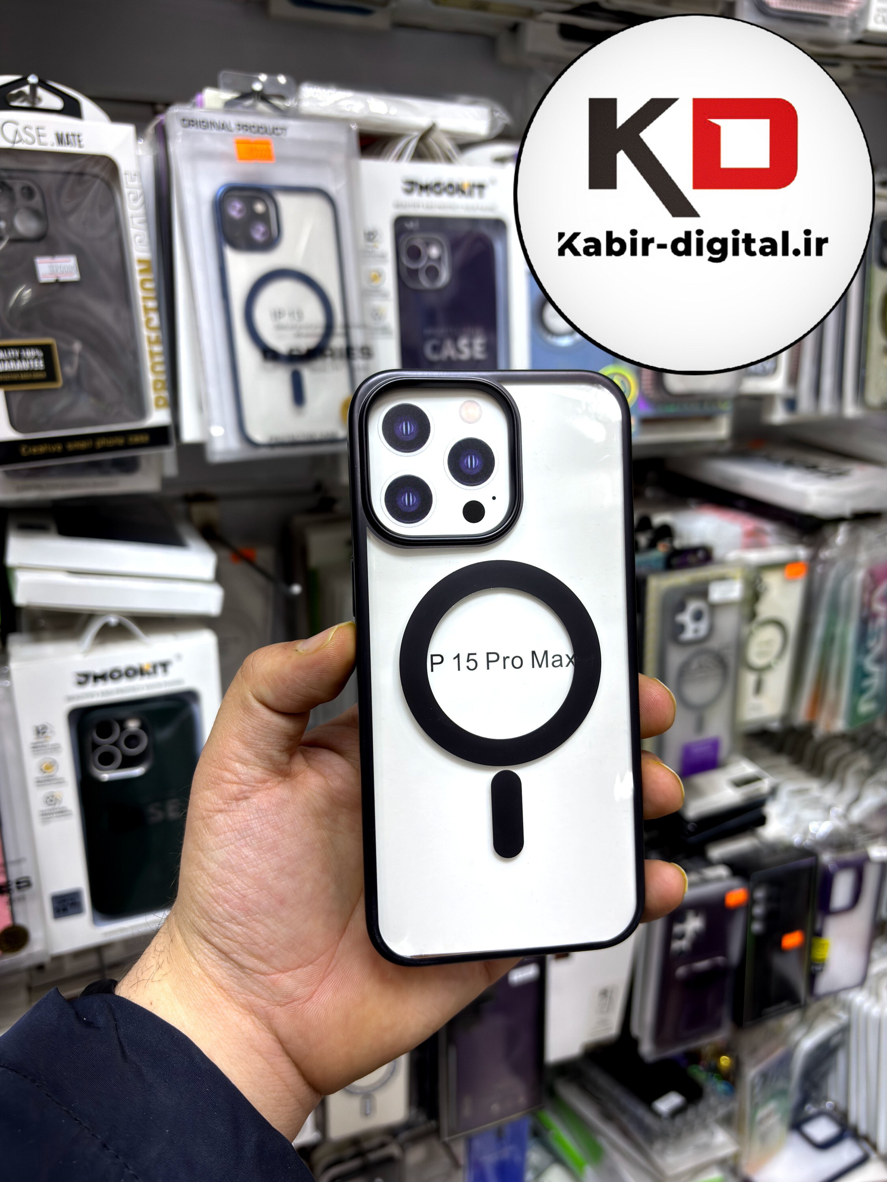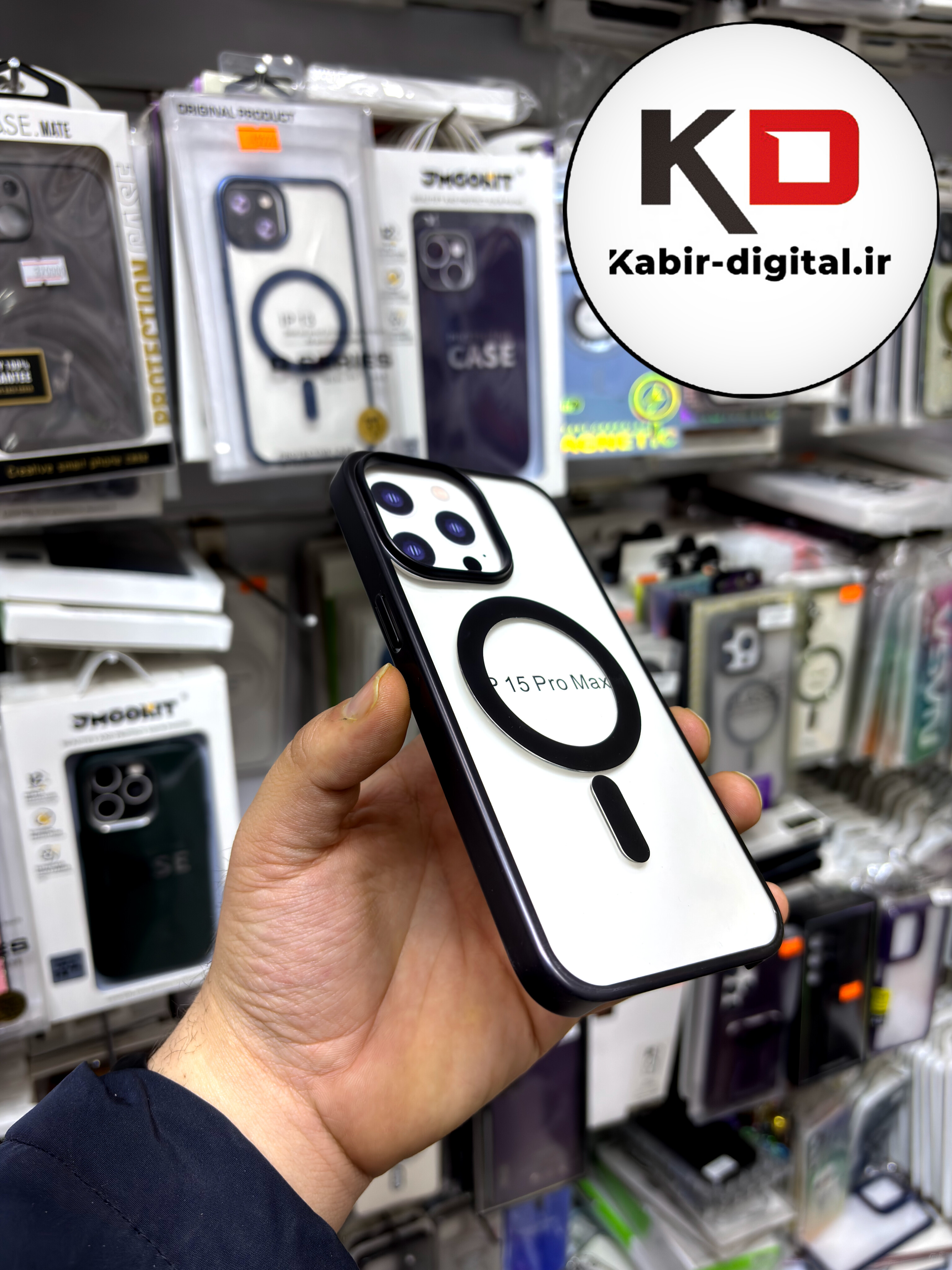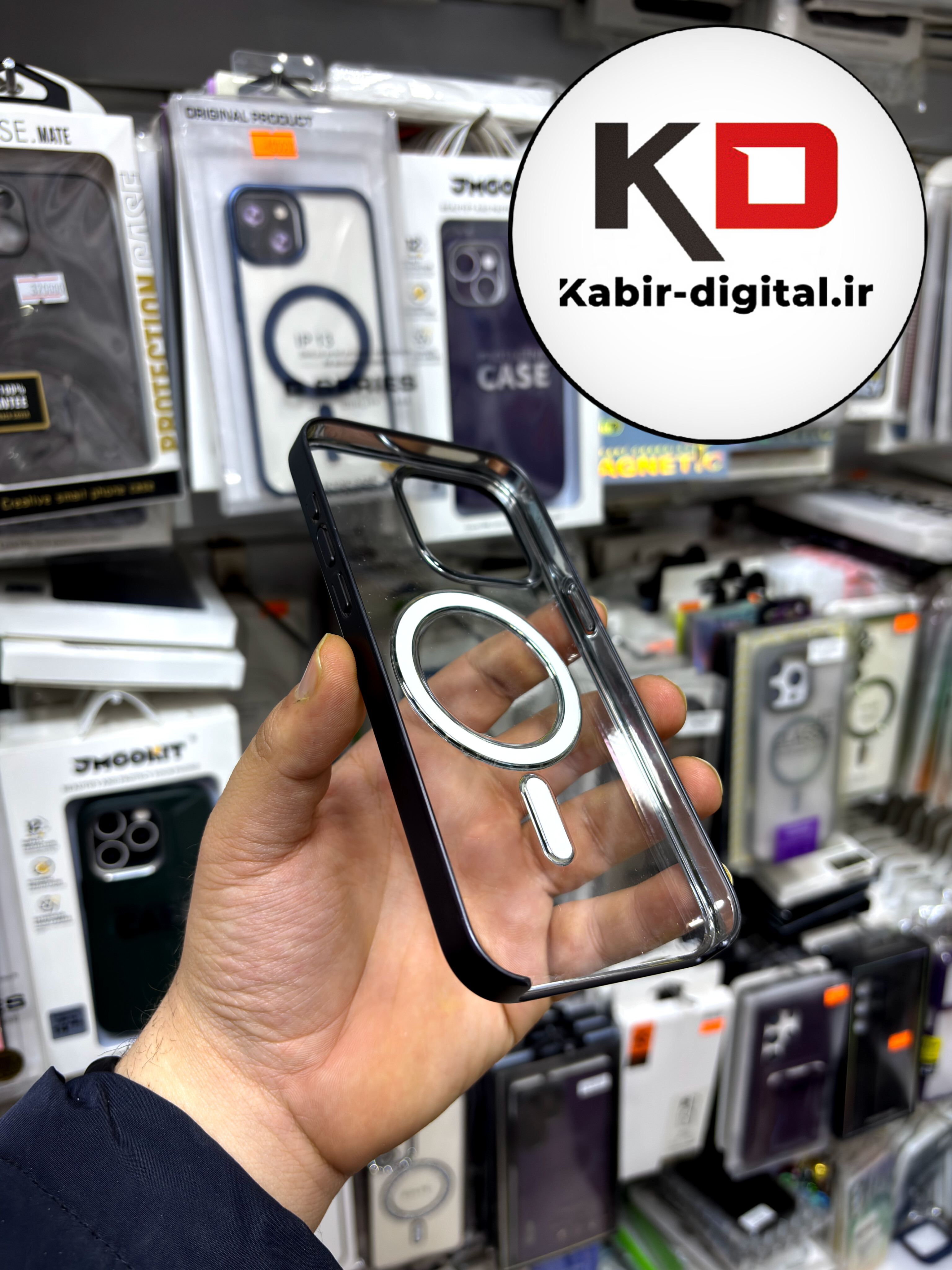 قاب گوشی iPhone 15 pro max آیفون طرح الکتروپلیتینگ مگ سیفی ژله ای شفاف اورجینال Q SERIES رنگ مشکی