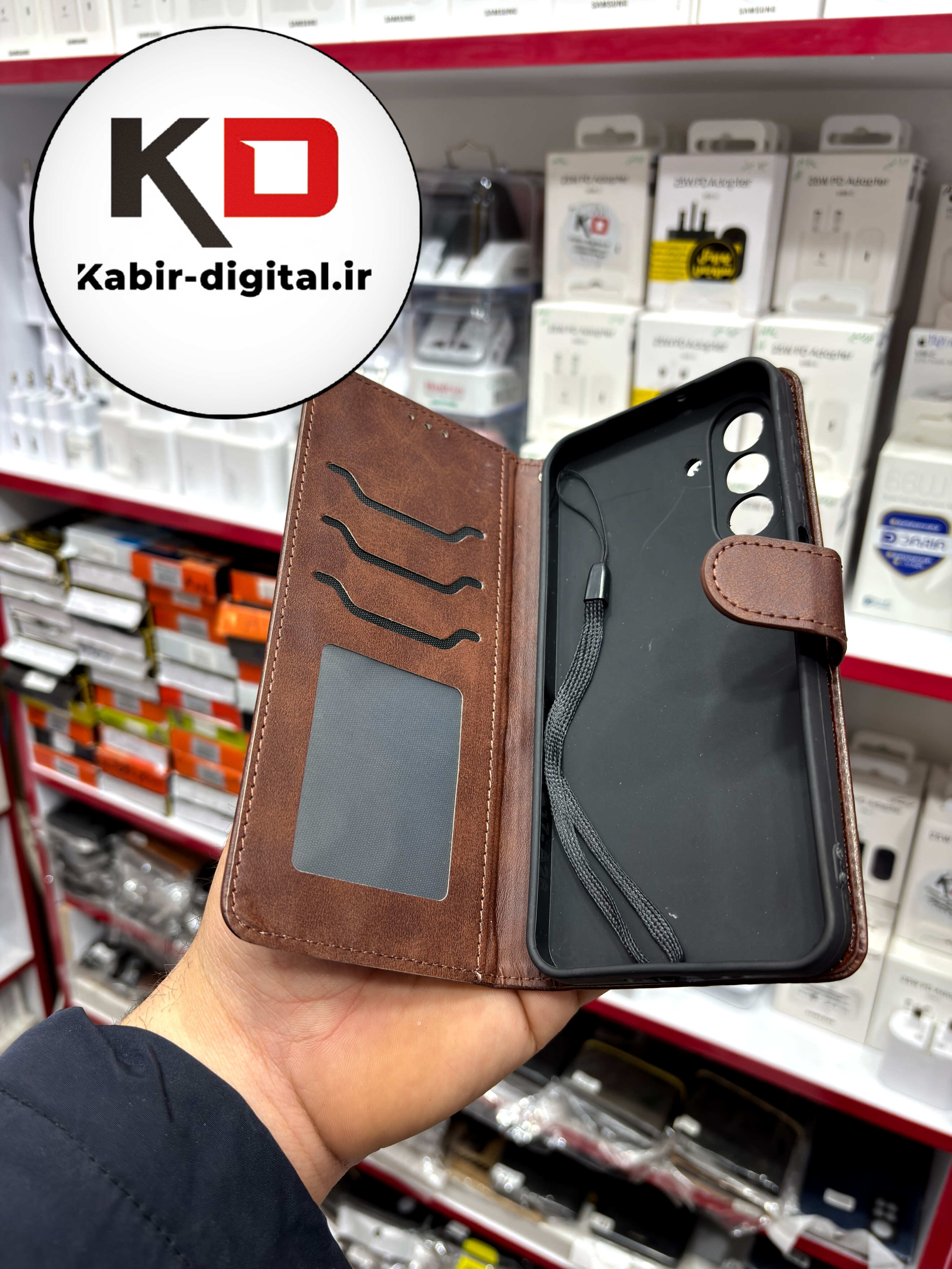 کیف گوشی Galaxy A17سامسونگ چرم مگنتی جاکارتی بند آویز دار قهوه ایی